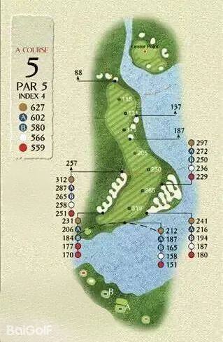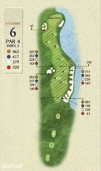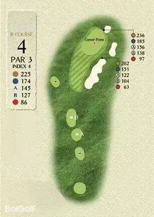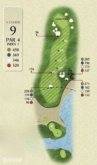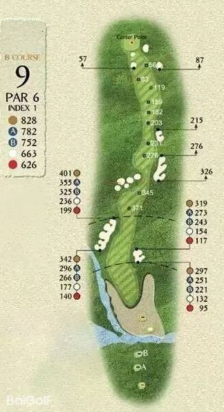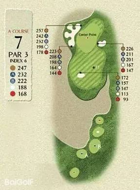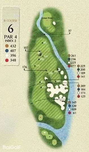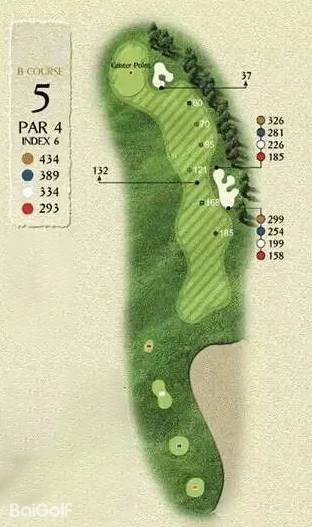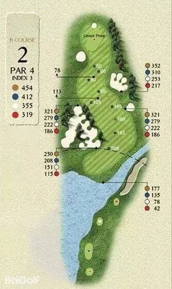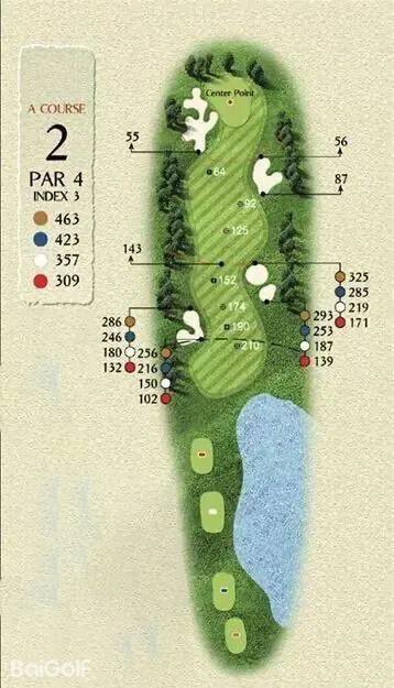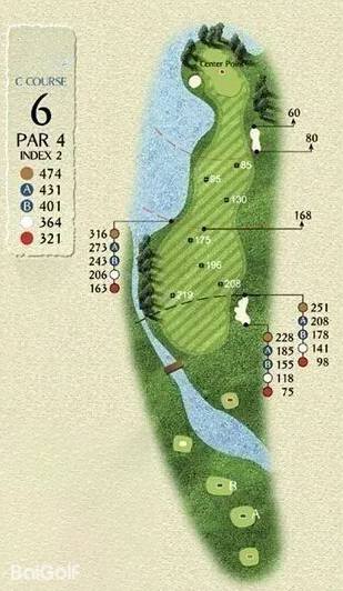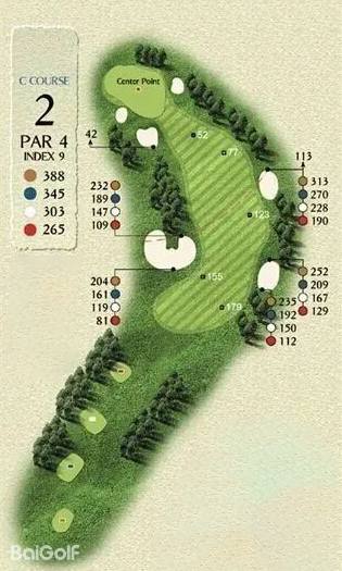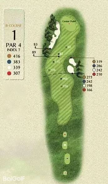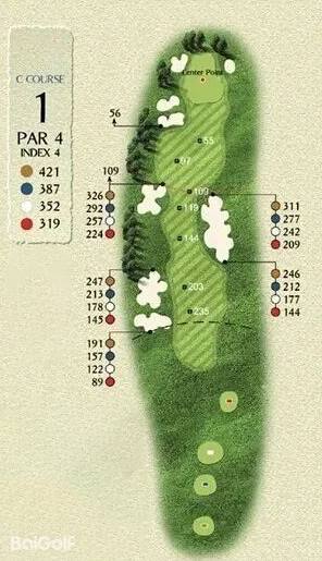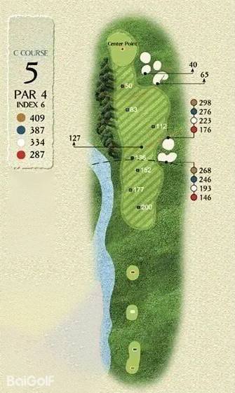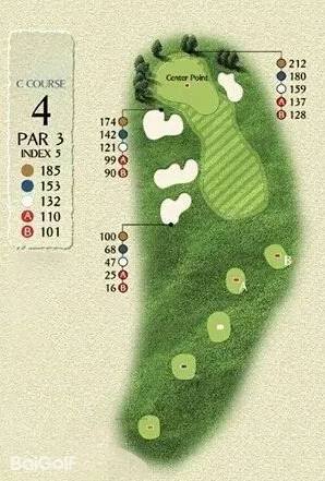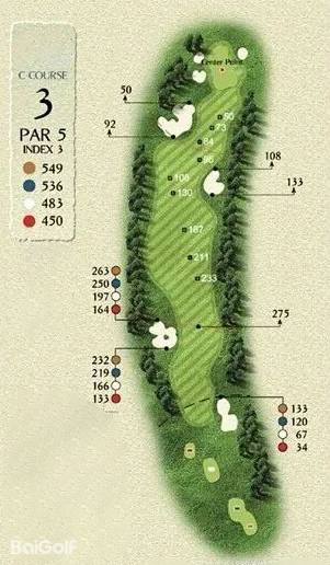C场:山景, 3599码,标準杆36杆。 B场9号洞为全国唯一的一个6杆洞、金T全长828码。A场4号洞拥有全国最大的果岭:面积达1100平方米,最大、最长的发球台:面积达150平方米、长度达160码。