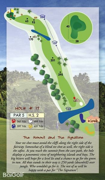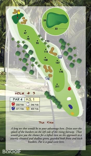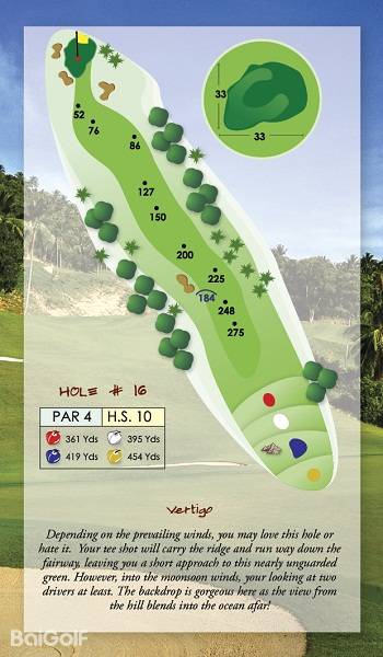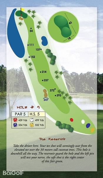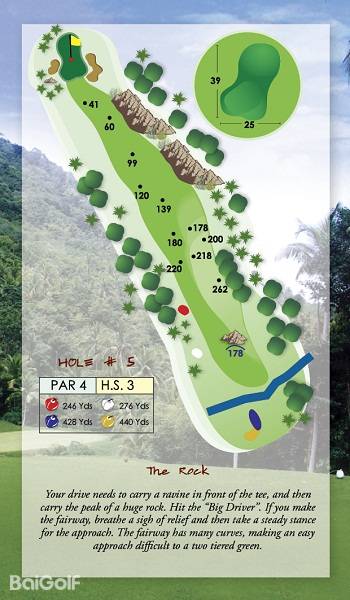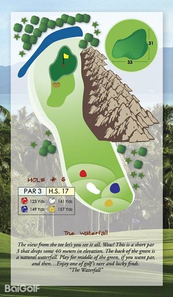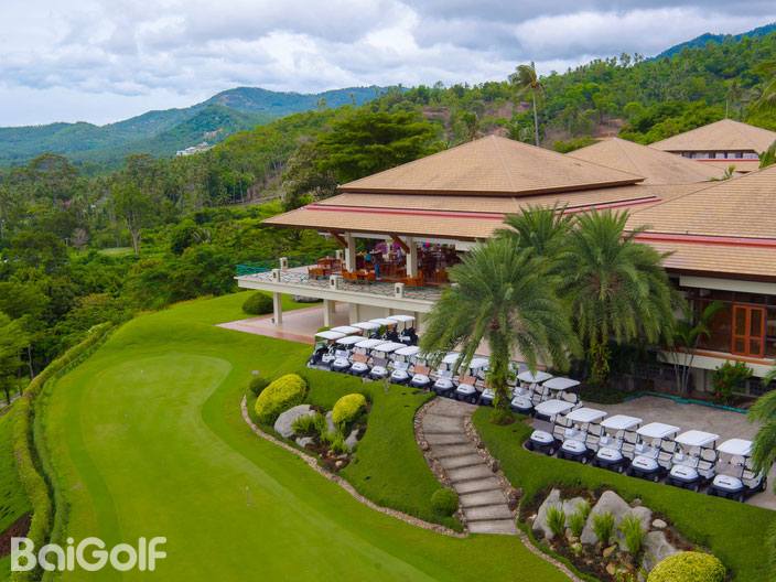苏梅乡村俱乐部是苏梅岛的第一家高尔夫球场,也是唯一的锦标级山地高尔夫球场,拥有郁郁葱葱的热带环境,既充满挑战性又充满魅力。这座 18 洞锦标赛高尔夫球场因举办 2006 年曼谷航空公开赛而声名鹊起。高尔夫球场位于苏梅岛北岸的山坡上,周围环绕着古老的椰子园,可以一览泰国湾和帕岸岛的壮丽全景。大多数球洞都有壮丽的海洋和海滩景色。瀑布和小溪流经这片土地,为郁郁葱葱的自然美景锦上添花,群山为球场提供了如画的背景。