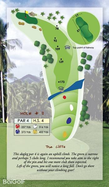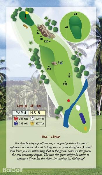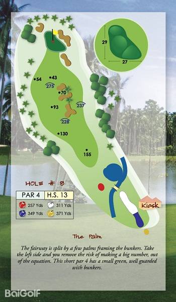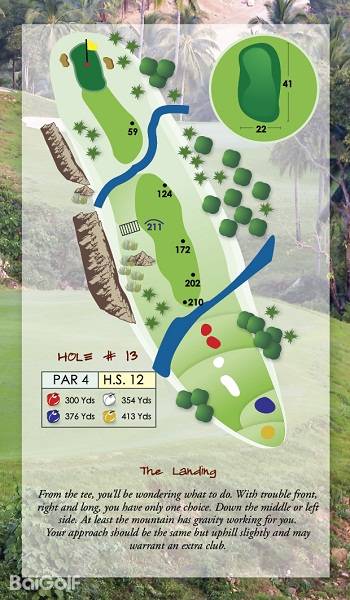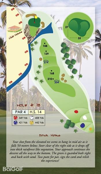 苏梅乡村俱乐部的 18 个球洞各有特色,挑战性十足。从陡峭的上坡和下坡,到蜿蜒曲折的球道,这些球道切入森林,蜿蜒绕过悬崖和溪流。这是一座短距离的山地球场,因此该球场注重击球的精准度,而非距离长短。大多数球洞的球道都很小,但宽阔的果岭让击球变得更容易一些。