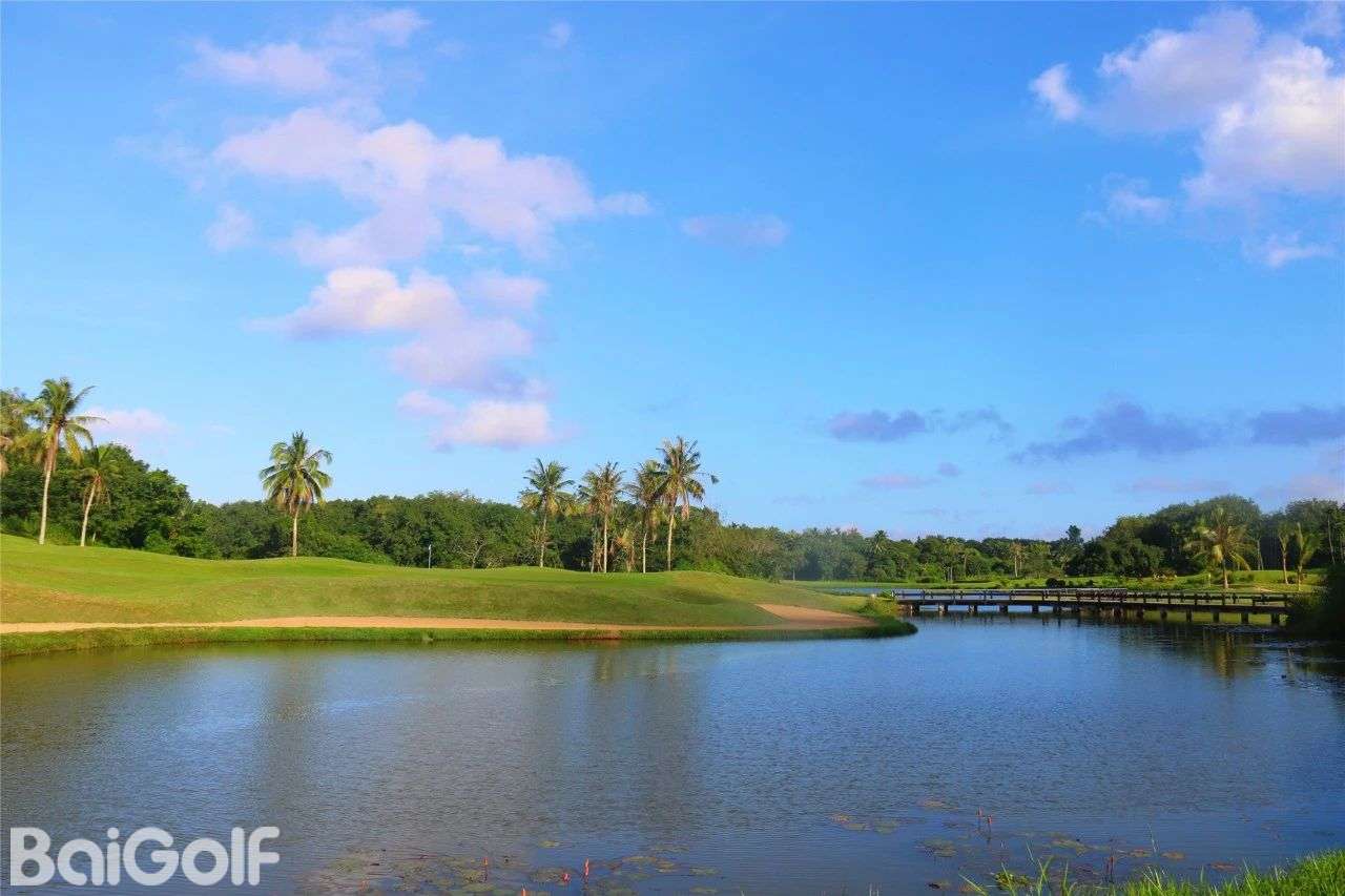海南兴隆汇程康乐园温泉高尔夫球会坐落于神奇的北纬18°海南万宁兴隆镇,由美国USGA的专业设计大师MR. ROBERT MCFARLAND精心布局的72杆国际锦标型球场,把橡胶咖啡等天然热带植物景观与太阳河分支流域融合,全长7201码的18个球道迂回穿梭于独特的丘陵地带,前9洞以林木景色为主,在山峦间行驶,后9洞飘曳在湖泊旁,逐渐增加水障碍难度,趣味十足。