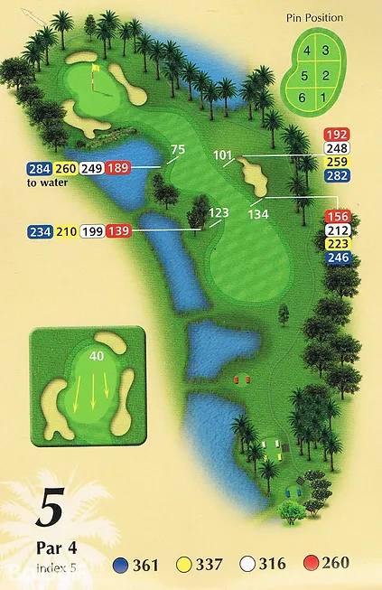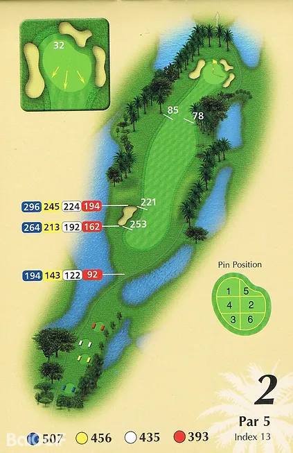棕榈山高尔夫俱乐部是华欣最早的国际标准球场之一,也是华欣最受欢迎的球场之一。球场整体布局极佳,果岭速度快,很容易上手,精心布置的水障碍也让球场更具挑战性。球场周围的热带植物和树木郁郁葱葱,后九洞起伏较大,可以欣赏到泰国湾的美景。