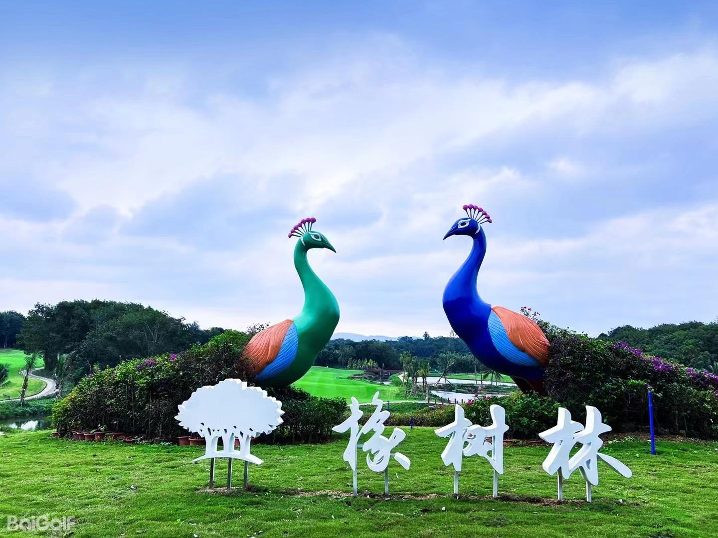 5号洞发球台左侧,由两只大孔雀组成的景观,已成为中国高尔夫新晋网红打卡点。左边的雌孔雀和右边的雄孔雀,围成了一个心形花园,它们含情脉脉地望向对方。而当花季来临,百花齐放时,一幅孔雀开屏的绝美景象便呈现在球友面前。