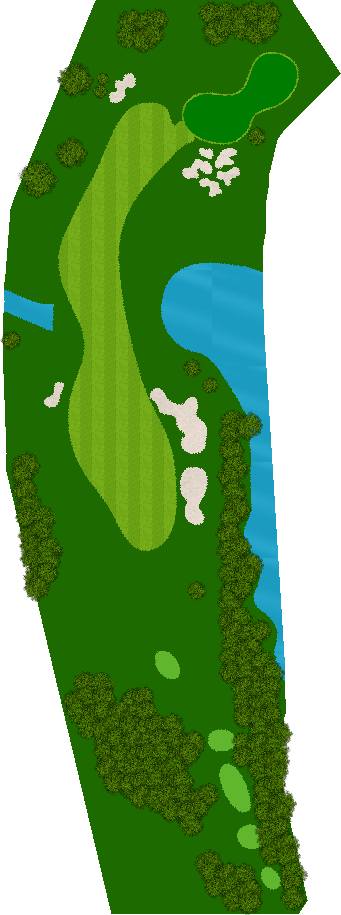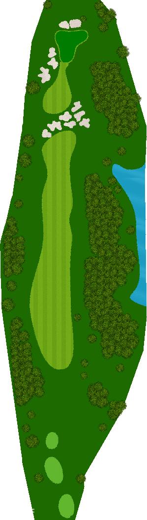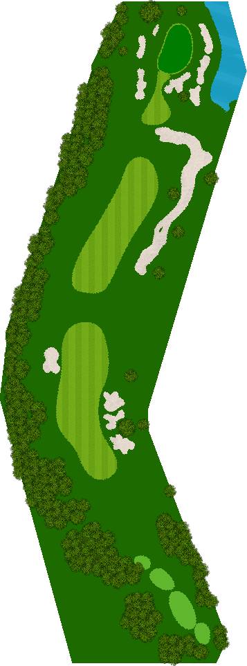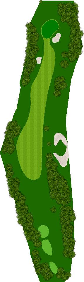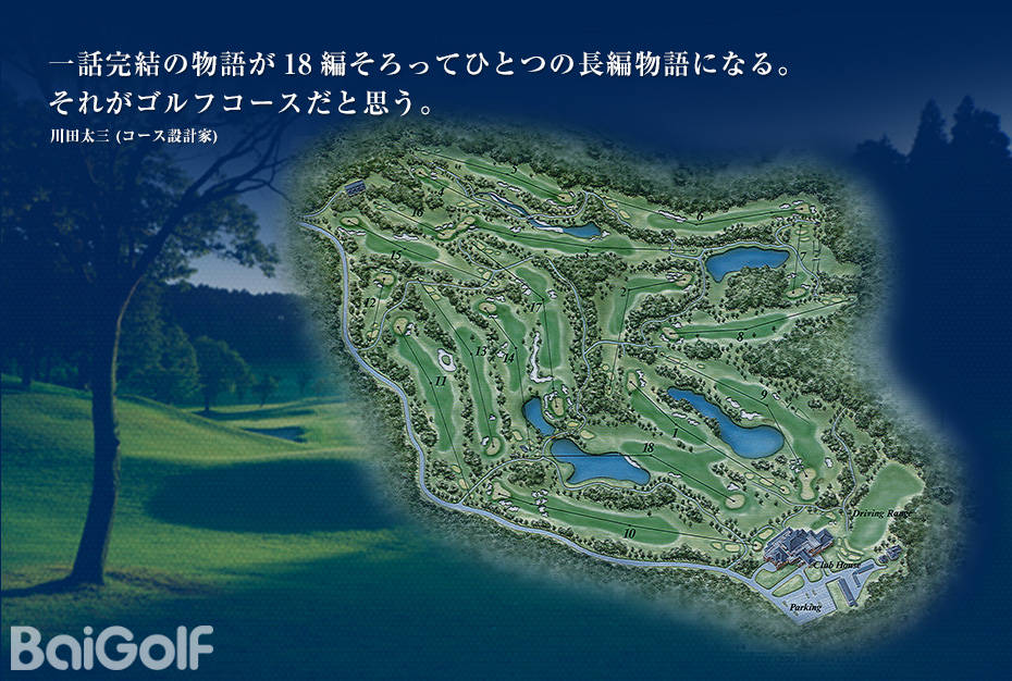 正如他所说,每个球洞的设计都各具特色。球场回归了高尔夫运动的起源,采用单一果岭的弯曲草坪、巧妙布置的湖泊和丰富的树木,所有这些都增强了球场的战略性。 在成田高尔夫俱乐部,宽 6 米、长约 1000 码的进场道路也被视为界内;转播桩被打在道路外侧,从这里打球,如果球打到道路上,不会受到任何处罚。