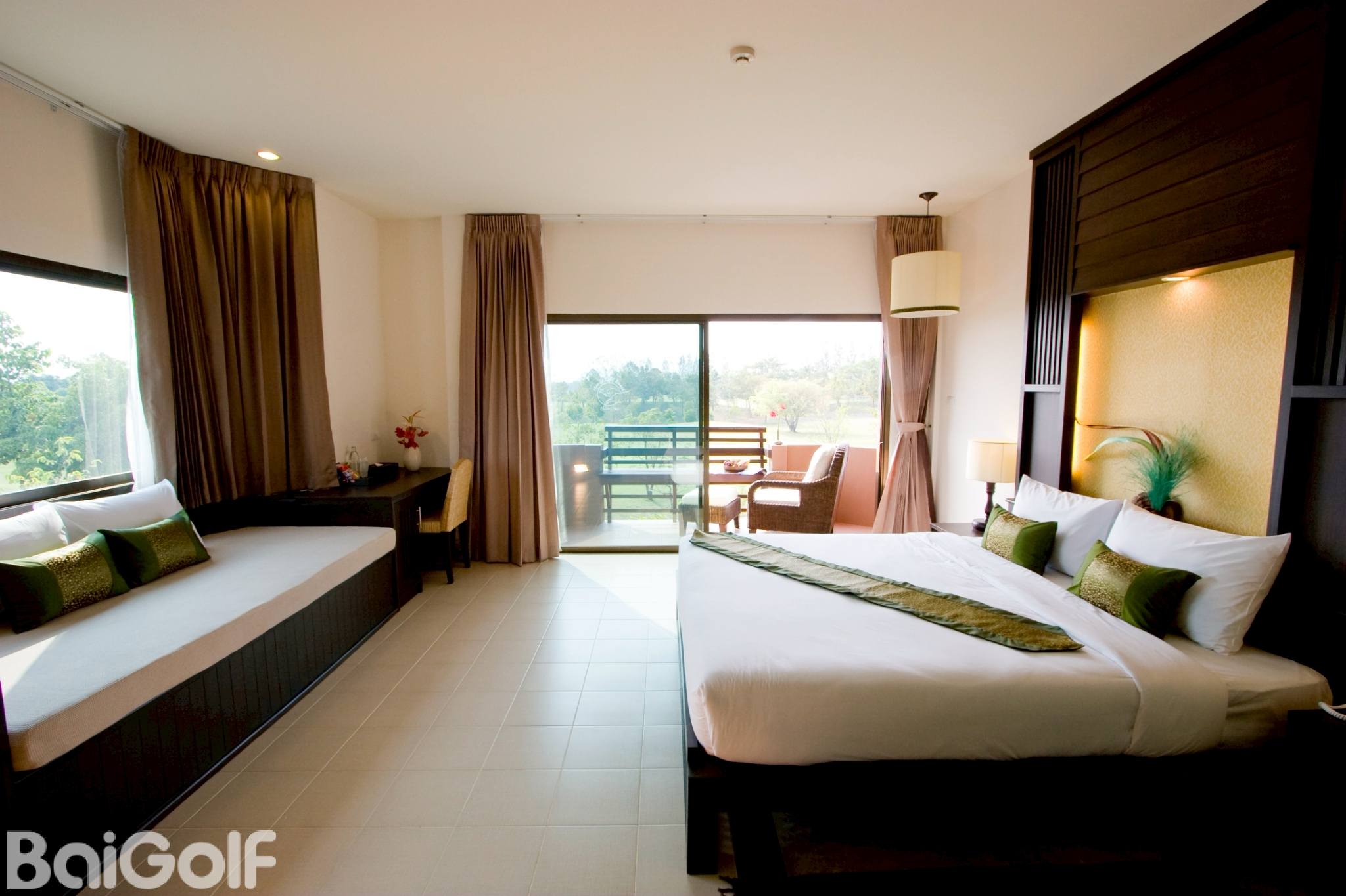 此球场有18个洞72杆标准杆,球道全长6730码,是一个国际级标准 18洞场地, 随丘陵起伏展现秀丽的风貌,且水池布置巧妙,调和为一充满异国情调的独特球场;另外洞洞皆具挑战性, 绝对能让百高球友尽力挥杆!多个高架发球台遍布整个球场,保留了球场及周边的全景,同时也提供了更具挑战性的打法。该球场拥有起伏的球道和具有挑战性的大型果岭,被认为是泰国北部最具挑战性的果岭之一。