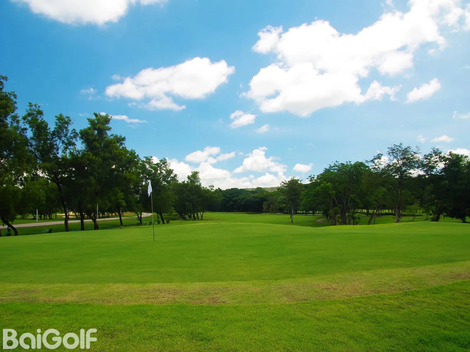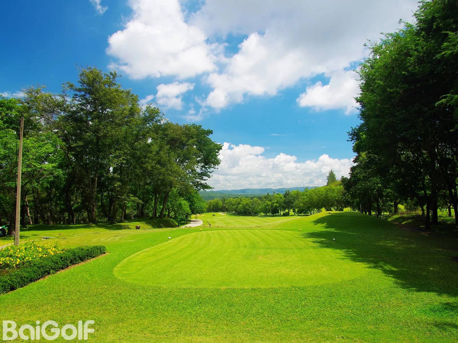 前九个洞建于1984年,分布在山脊上,有蔚为壮观的山丘和山谷美景。有几个洞是上坡或者下坡,需要盲打过果岭,是对高尔夫球技的良好考验。后九个洞建成于1990年,把这个清迈的球场建成了一个标准的72杆,长度6840码的球场。最令人难忘的球洞包括标准杆 5 杆 2 号洞,该洞有两个替代果岭。这个短标准杆 5 杆的上坡很陡,向左拐弯,需要盲打接近旗杆。标准杆 4 杆 6 号洞是球场上最难的球洞。开球时会打到山谷,球道左侧有一个湖泊。避开湖泊,然后从山谷的另一边打回倾斜的果岭。湖岸上的大树可能会挡住球友的视线。