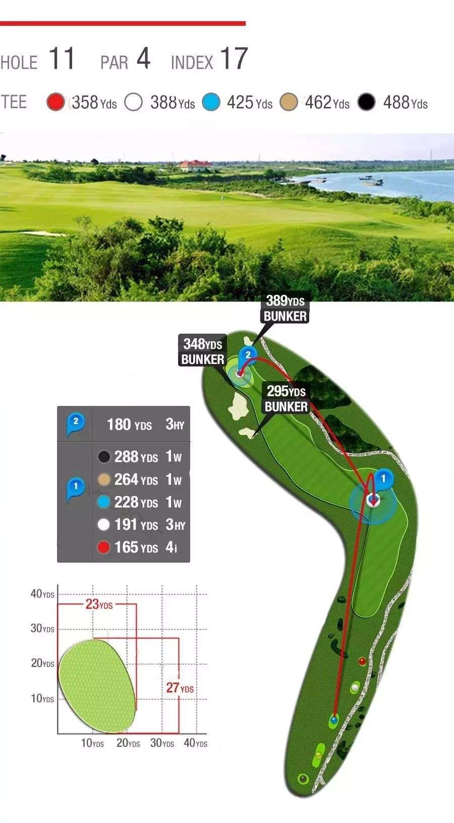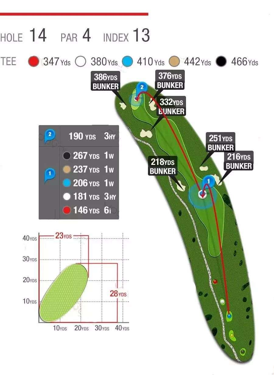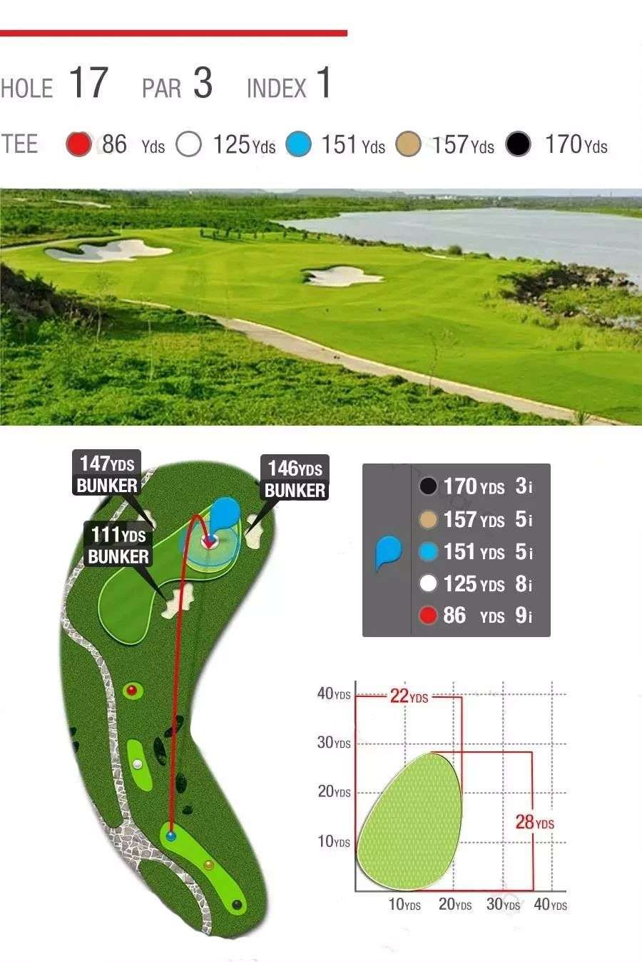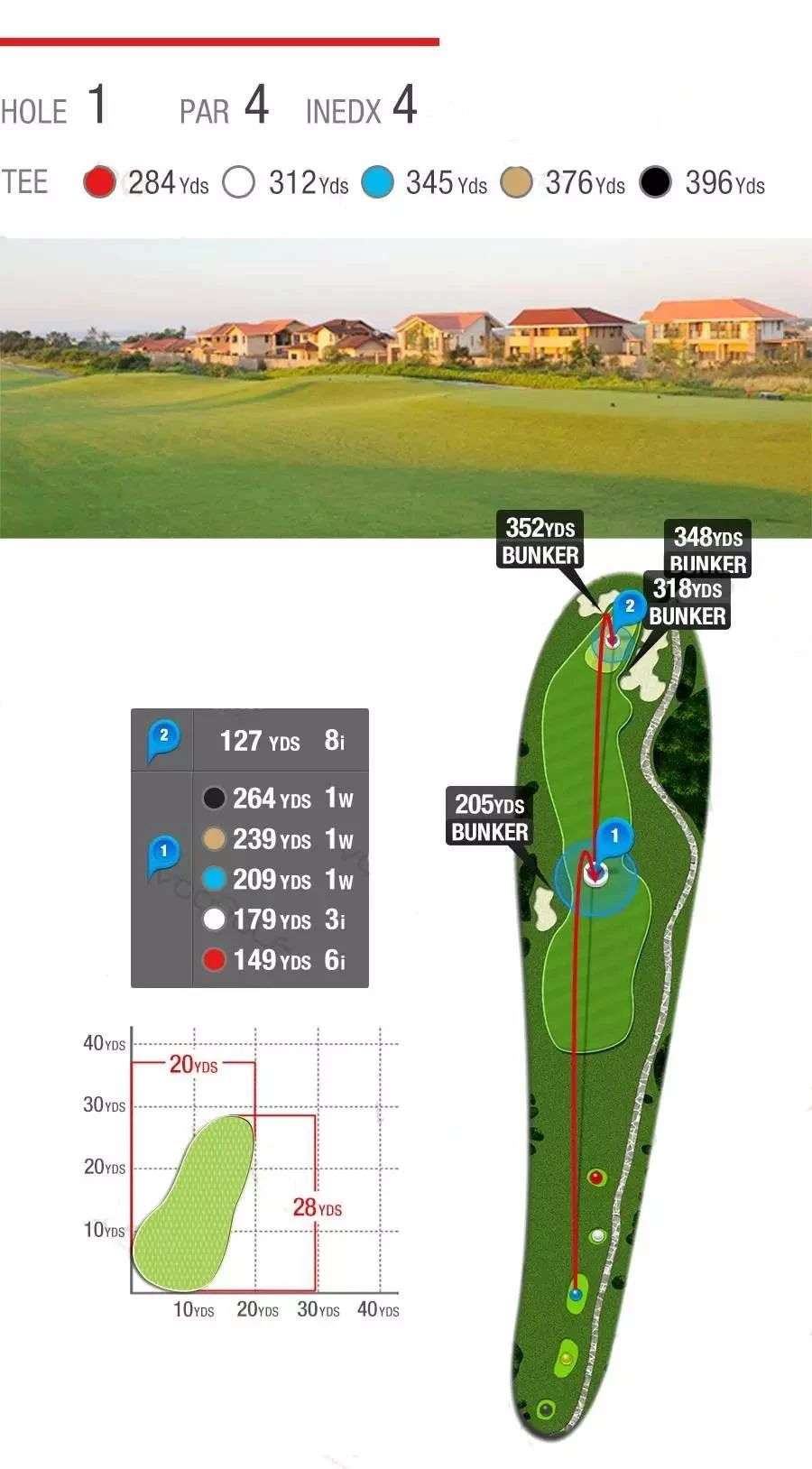 柔软而惊险的沙坑、湛蓝而恼人的池塘,茂密而整齐的长草,9条球道环海,7572码全程海风吹拂,属于典型的滨海高尔夫球场,具有浓厚的欧美Links球场韵味。球道设计精湛、造型细腻,球道看似平坦,却暗藏玄机,兼具挑战性和娱乐性,能满足不同水平球手的需要,是兼具观赏性与挑战性的国际顶级海景球场。