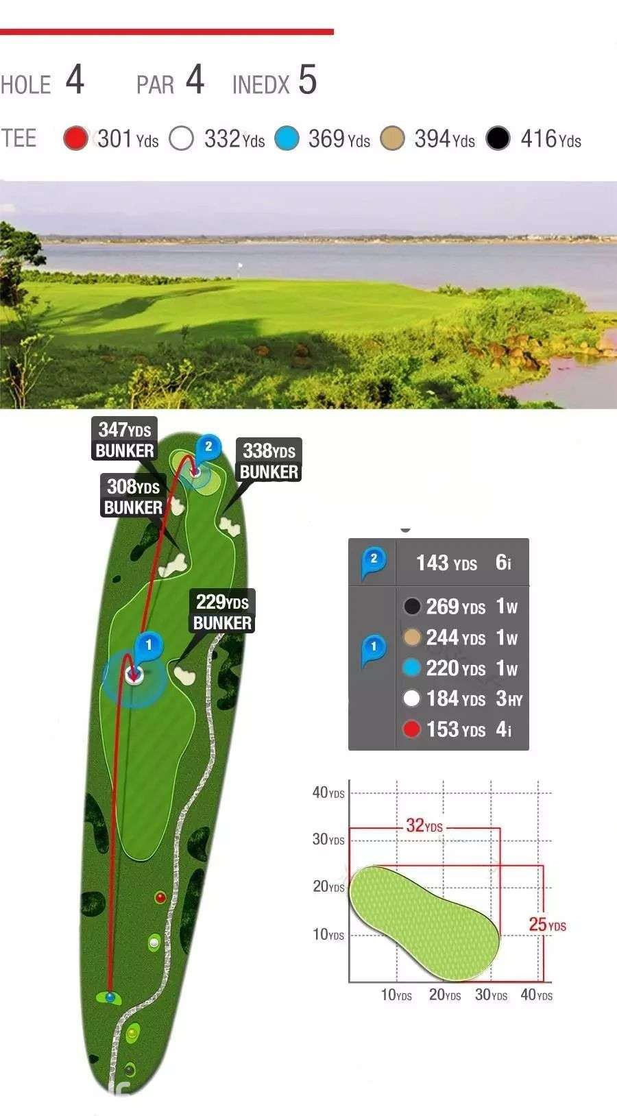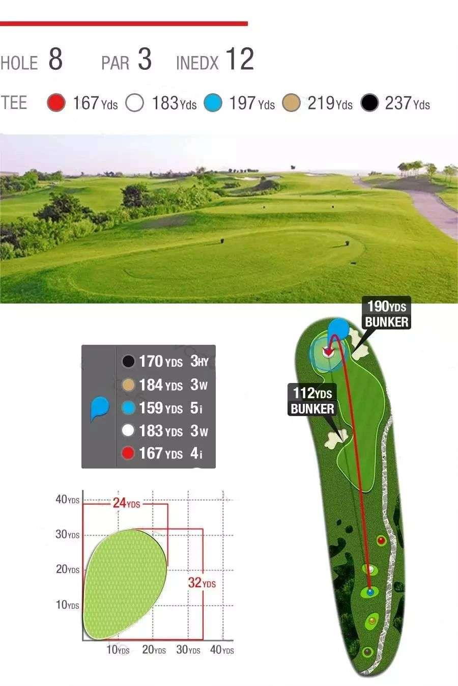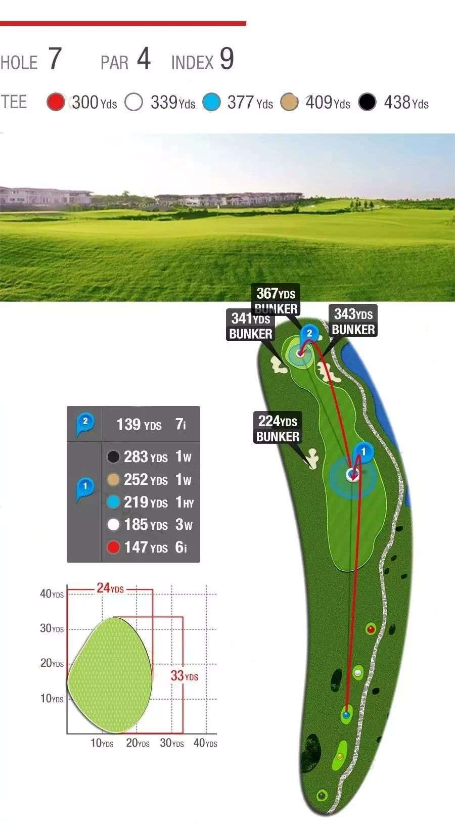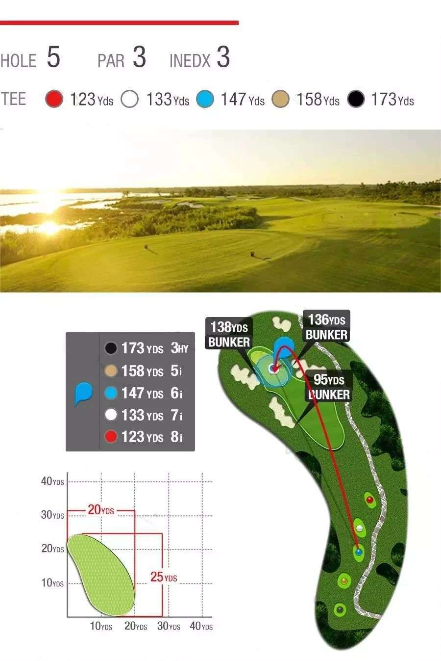柔软而惊险的沙坑、湛蓝而恼人的池塘,茂密而整齐的长草,9条球道环海,7572码全程海风吹拂,属于典型的滨海高尔夫球场,具有浓厚的欧美Links球场韵味。球道设计精湛、造型细腻,球道看似平坦,却暗藏玄机,兼具挑战性和娱乐性,能满足不同水平球手的需要,是兼具观赏性与挑战性的国际顶级海景球场。