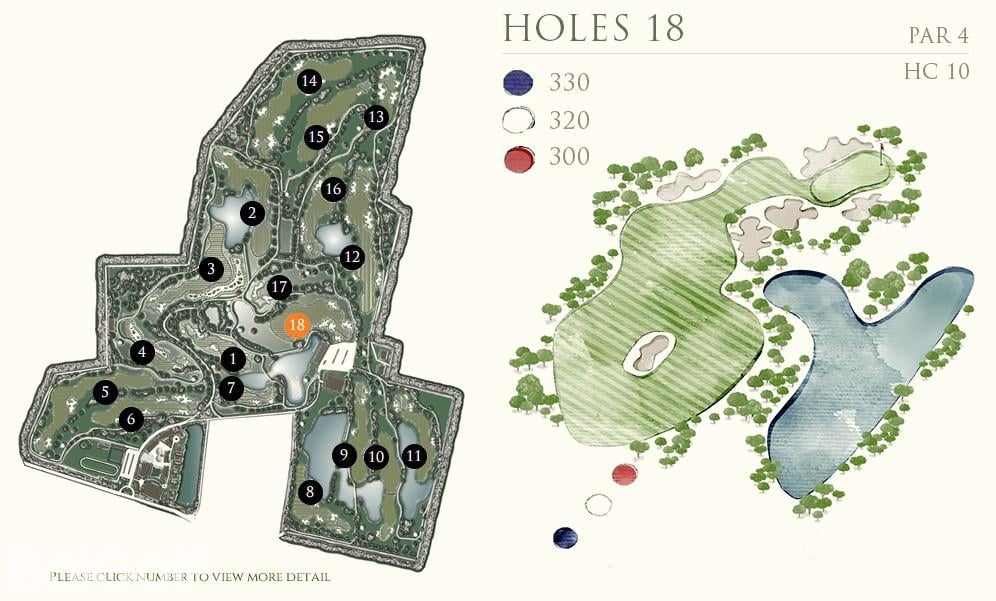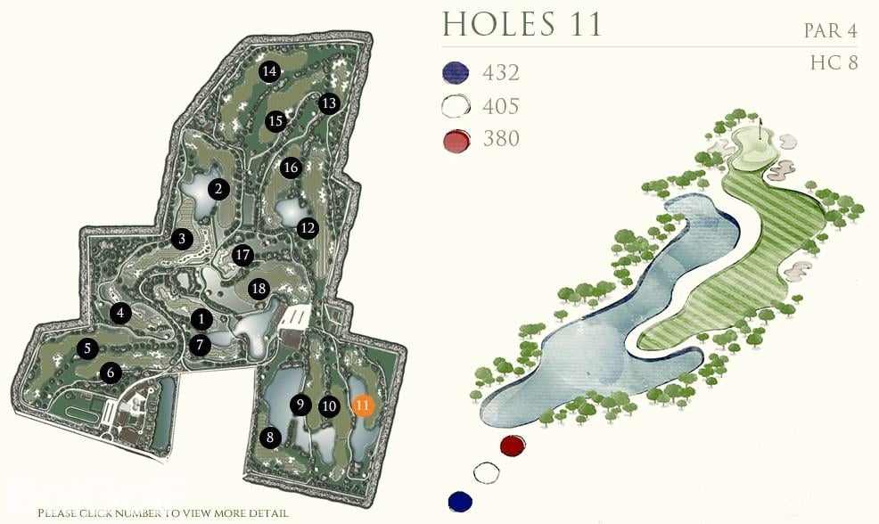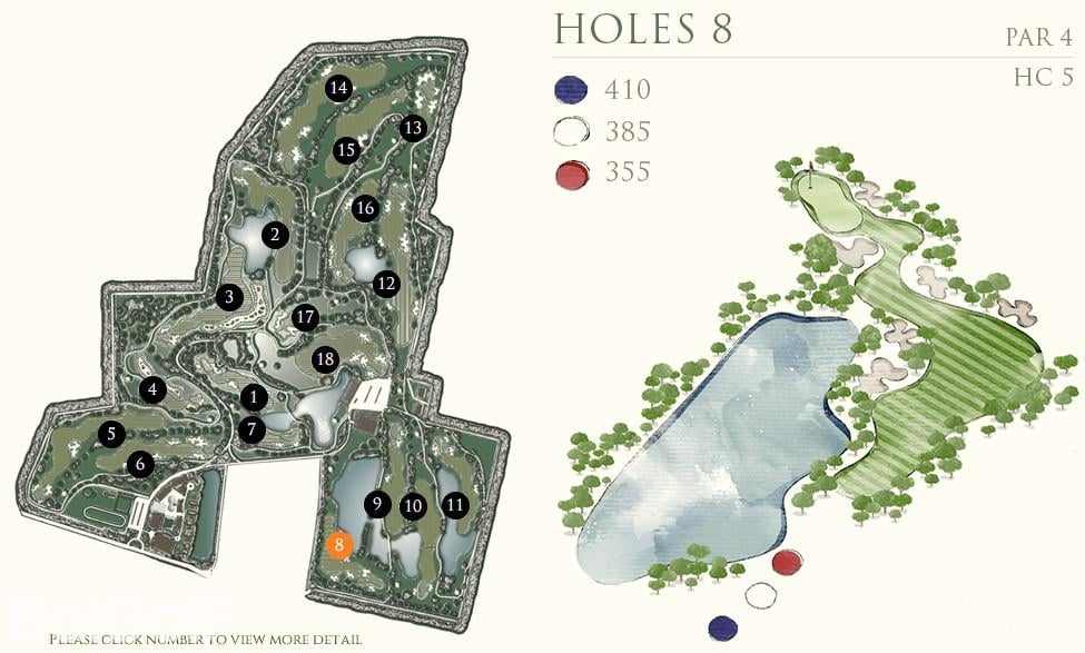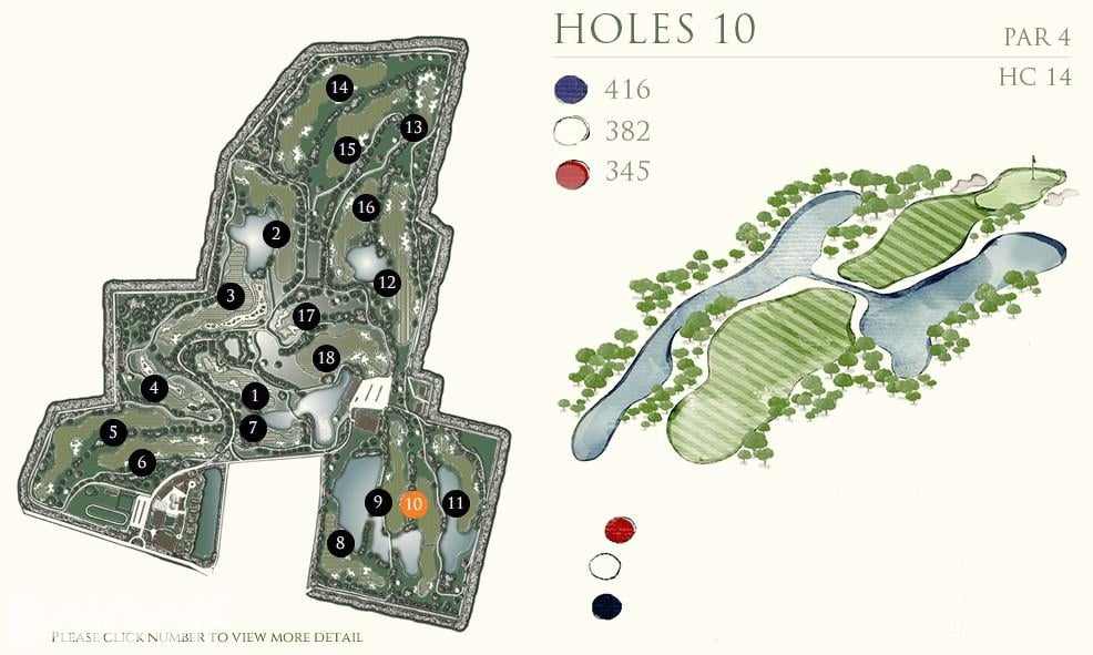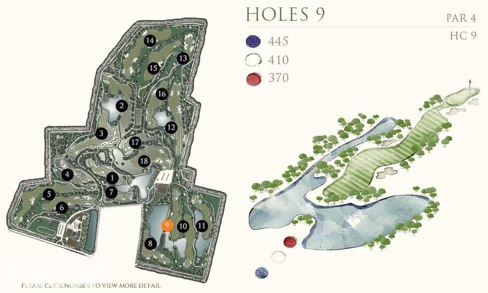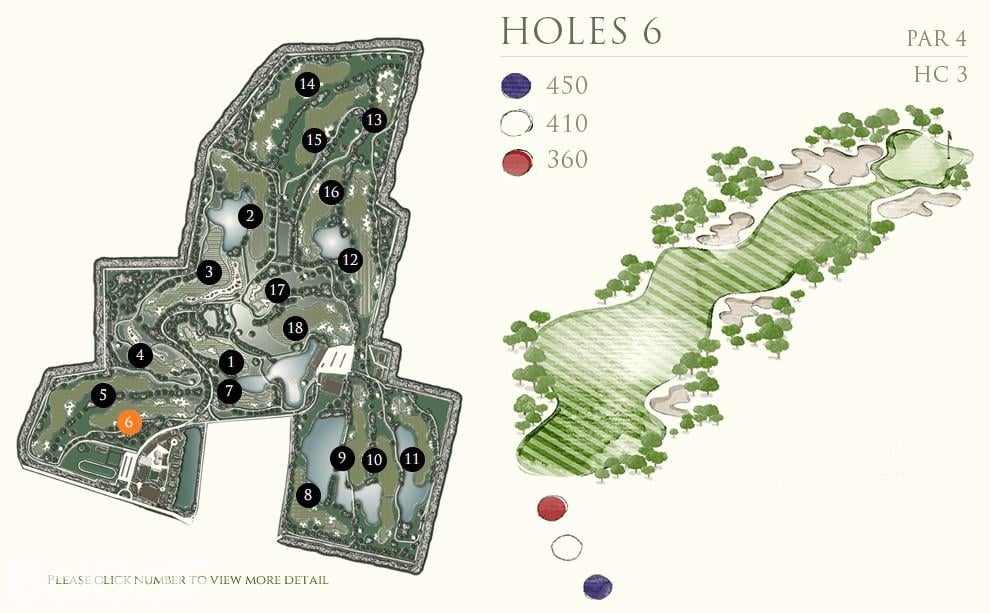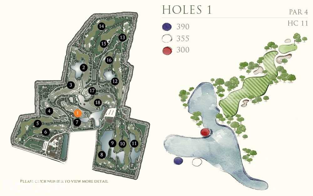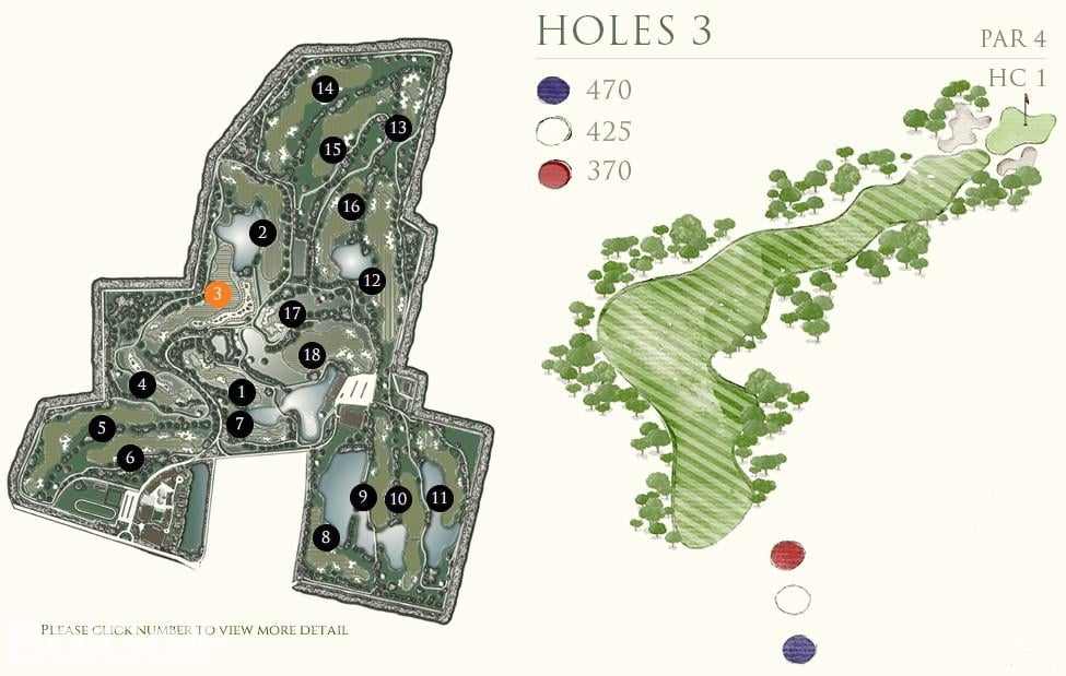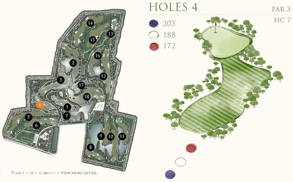 前九洞是在一个乡村农场附近打球,后九洞延伸到了一块平坦的土地,后面有很好的山景作为映衬。虽然球场不算太紧凑,但遍布球场的沙坑提醒着球手不要太放松了。Rancho Charnvee是一个长距离的有挑战的球场,从三个发球台出来,就有很多水域,一不注意还会有出界的可能。球场地势平坦,足以让球技较好的球手感兴趣,而差点较高的球手也不会觉得太难。