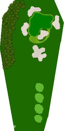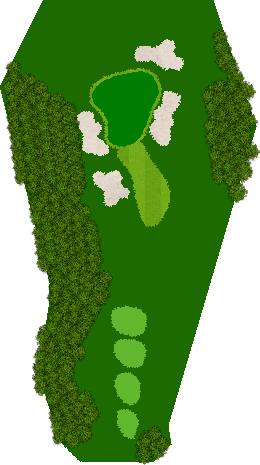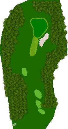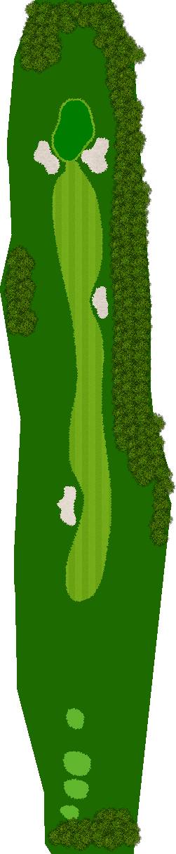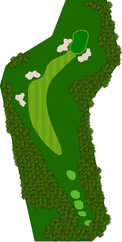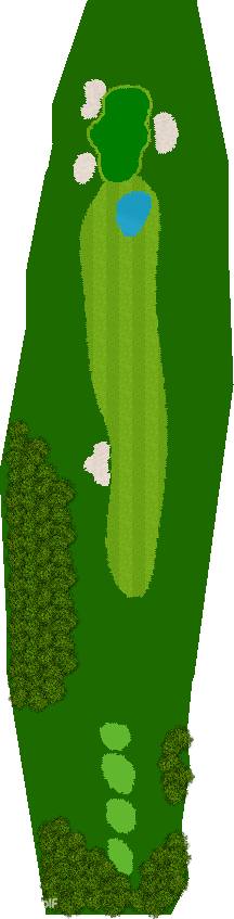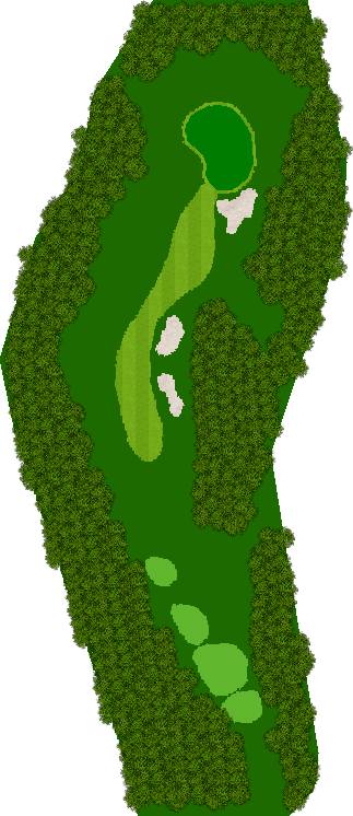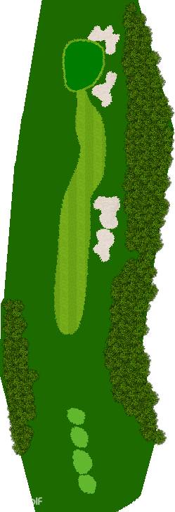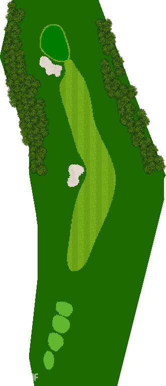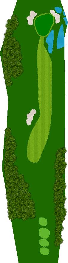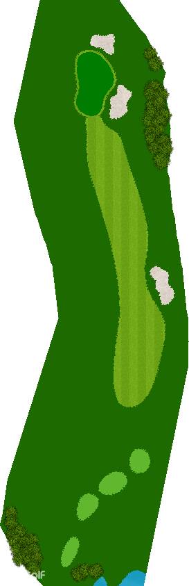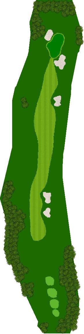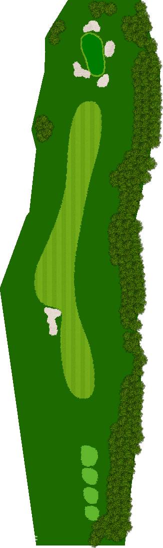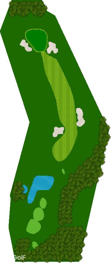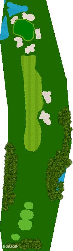 后九洞是一个战略性布局,障碍巧妙地分布在球道上。第12洞是一条右狗腿的长洞。由于两边都是界外球地且空间狭窄,第一杆应该使用铁杆。第二杆要注意左侧沙坑。
