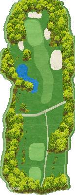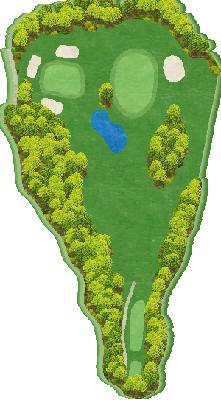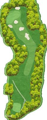 丘陵高尔夫球场。位于高地上,但球场内的起伏较少,相对平坦。东球场距离较长,3号洞左侧有河流,7号洞左侧有池塘,变化丰富。中球场上升的7号和8号洞有池塘,需要注意。西球场在三个球场中起伏较多,还有两个越过河流的洞,球道较窄,需要准确的击球。