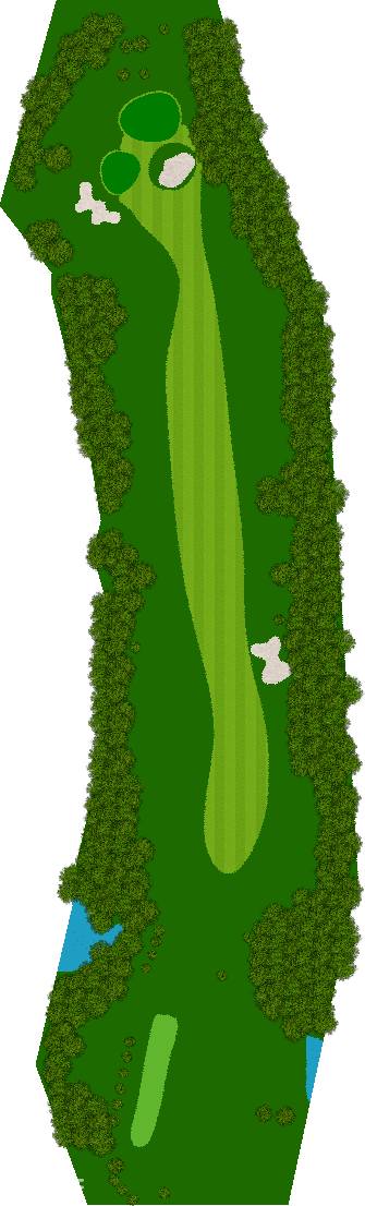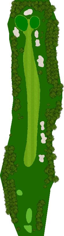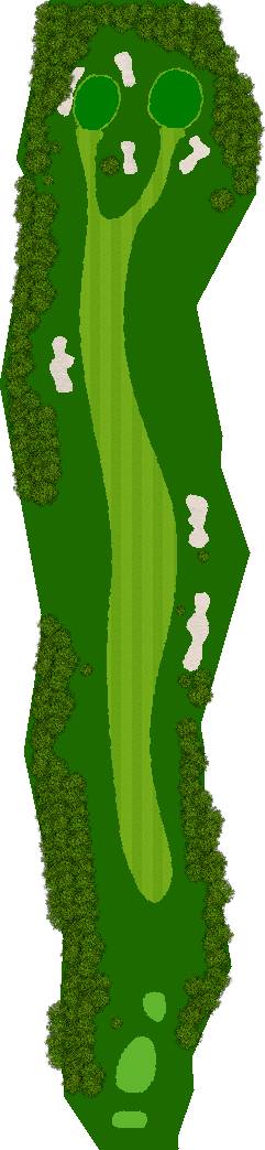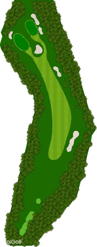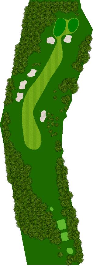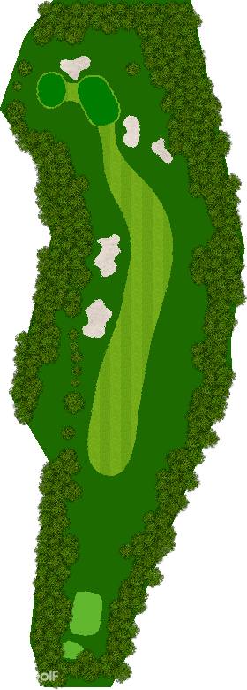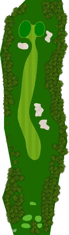 这是一座独具特色的丘陵球场,葱郁的松树林将每个球洞自然分隔开来,地势起伏舒缓却暗藏玄机。不少球洞的设计颇具巧思:开球时呈下坡之势,第二杆却需迎向缓坡而上,因此精准把控第二杆的击球距离尤为关键。东球场的第8洞是一个向左的动态下坡狗腿洞,右角有一个沙坑。西球场的第3洞是一个缓上坡,果岭右侧有一个沙坑,所以要瞄准左侧。中部球场6号洞位于峡谷之上,落球区狭窄,开球时要小心。