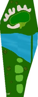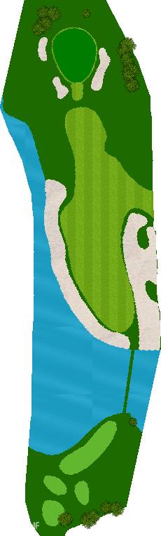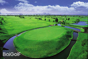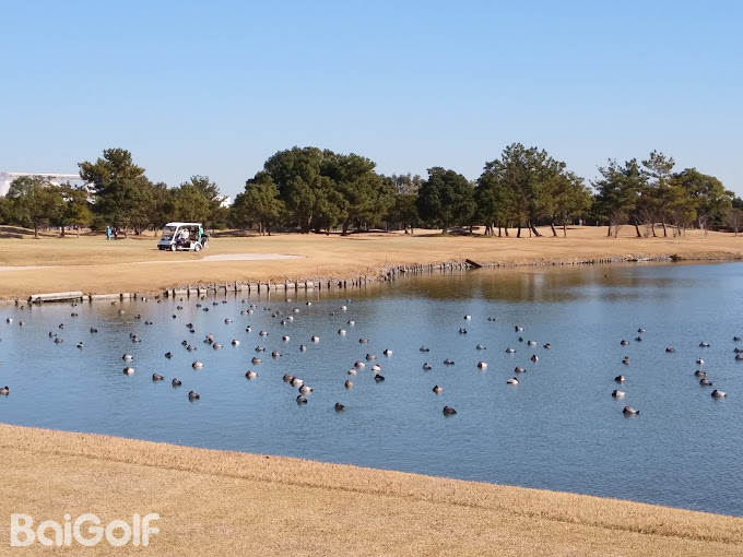 半田高尔夫球场是一个海、风、陆环绕的纯正海滨球场。球场地势平坦,整个球场的高差不到3米,球场是英式林克斯球场的翻版,球洞之间由小丘隔开,小溪、池塘和沙坑增加了难度。球场面向海湾,因此冬春季节的海风是打高尔夫时的一大阻力。外场在球场外围进行,第7洞是沿着海湾的中间长洞,第9洞是被小溪环绕的浮岛果岭。内场则在球场内部,只有第16洞和第17洞没有池塘和小溪。该球场对击球的准确性要求较高。