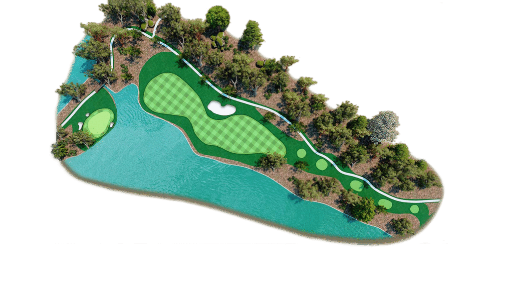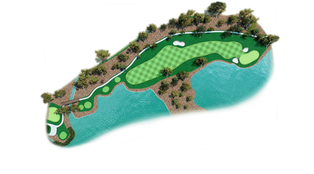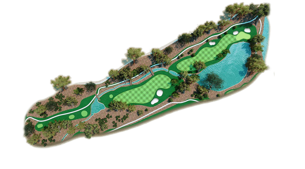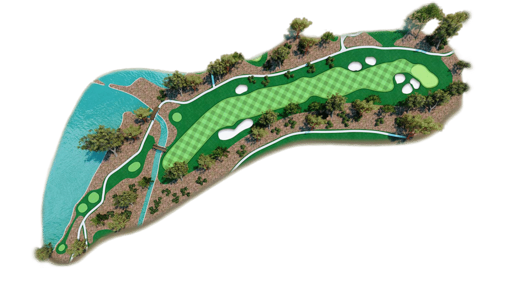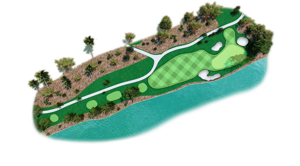 球场的设计以环保、美观和友好为重点,整个 18 洞球场都洋溢着自然之美。球道与果岭使用的是最新品种雀稗草和各种百慕大草,其中第17洞非常有趣,因为设计了长600码的五杆洞,让球手可选择以狗腿打法或两个较短的击球得分,具有挑战性。 最后一洞是在大型的人工湖和会所前打球。该420码四杆洞时常令球手头疼,尤其是海风盛的时候。