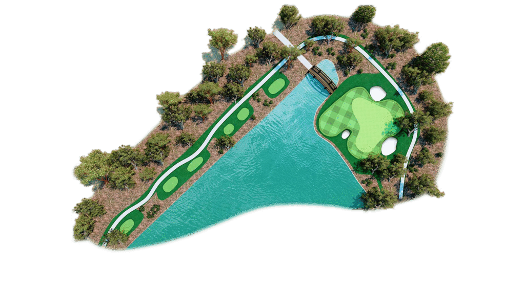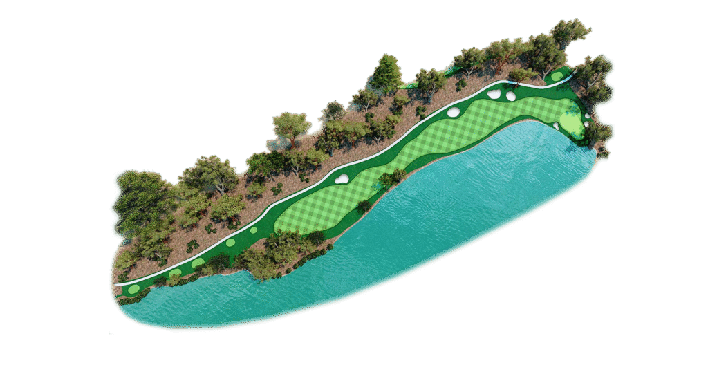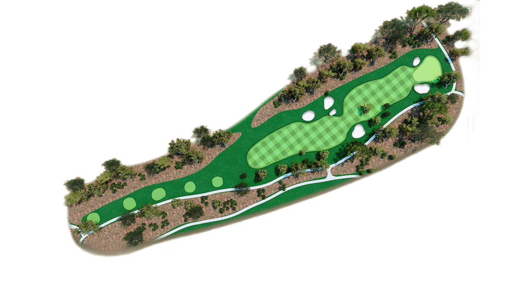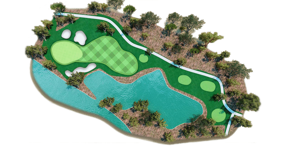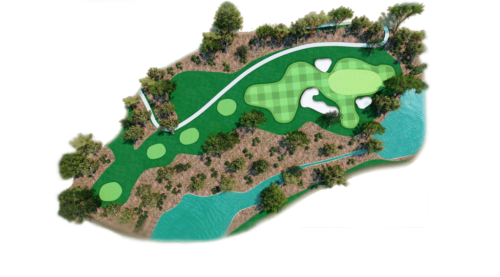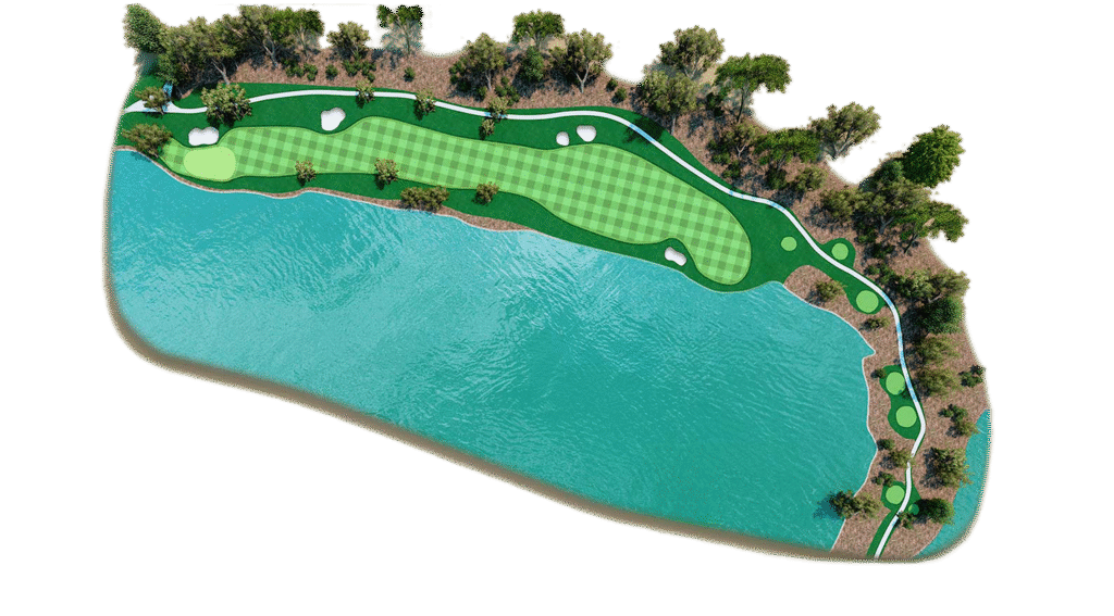 球场的设计以环保、美观和友好为重点,整个 18 洞球场都洋溢着自然之美。球道与果岭使用的是最新品种雀稗草和各种百慕大草,其中第17洞非常有趣,因为设计了长600码的五杆洞,让球手可选择以狗腿打法或两个较短的击球得分,具有挑战性。 最后一洞是在大型的人工湖和会所前打球。该420码四杆洞时常令球手头疼,尤其是海风盛的时候。