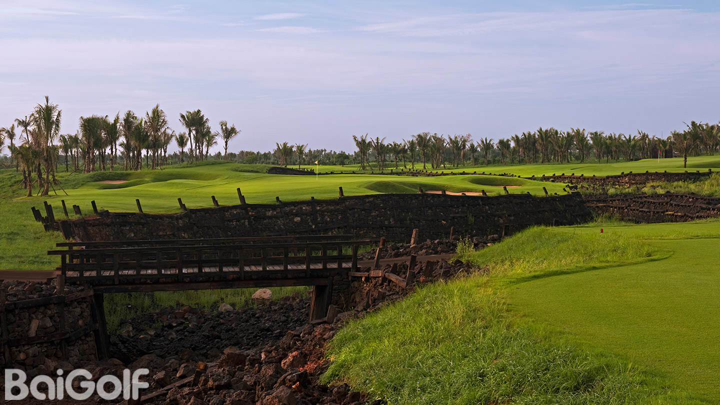 这块球场作为对史密特科里团队的导师——北戴先生——的献礼,陈列出了与他的设计相关的所有独特风格特点。铁轨枕木、突兀的山包、雪丘形障碍、大片的荒地沙坑、魔鬼般的有时面积颇小的果岭以及火车车厢式桥梁,所有这一切组合在一起,创造出了非常独特的景观特征。这些景观融汇于曲折盘旋的球场当中,加上古老火山岩式的原始地貌,以及陡峭的石墙、茂密的树丛,给整个球场引人注目的景致增色不少。球场的原始景观来自过去的煤矿车、铁轨的残痕以及被遗弃的采矿设备等。球场的风格非常直爽、运动感强,需要冒进而大力的击球。在当今风起云涌的“码数超长”的球场行列中,它是一个和蔼而不乏乐趣的另类选择。