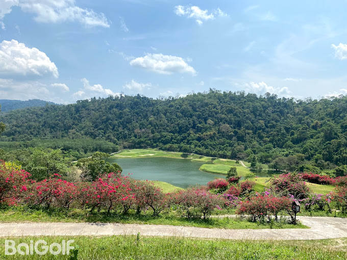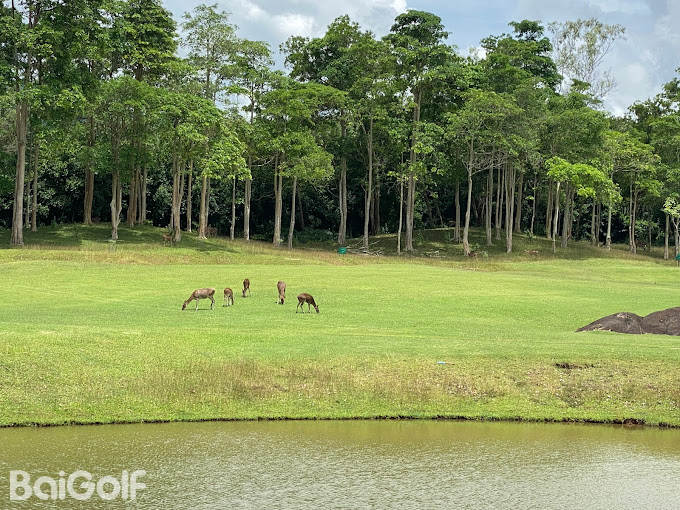 山谷球场左侧果岭长度为 7173 码,右侧果岭长度为 7197 码,两侧总杆数均为 72 杆。在这 18 个 “双子 ”洞中,有 5 个3杆洞、8 个4杆洞和 5 个5杆洞。其中最受欢迎的是第 15 洞和第 17 洞,前者的果岭坡度较大,落在一个池塘上,后者则位于悬崖上,可以欣赏到全景。