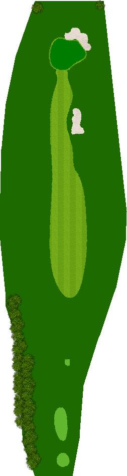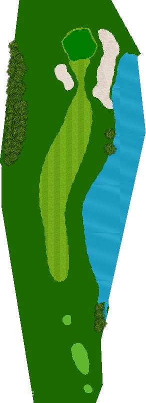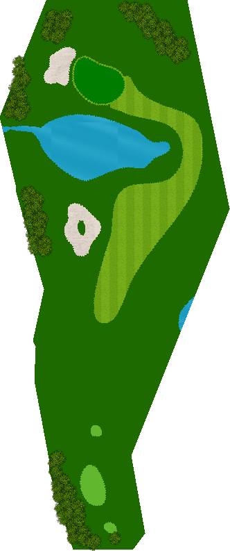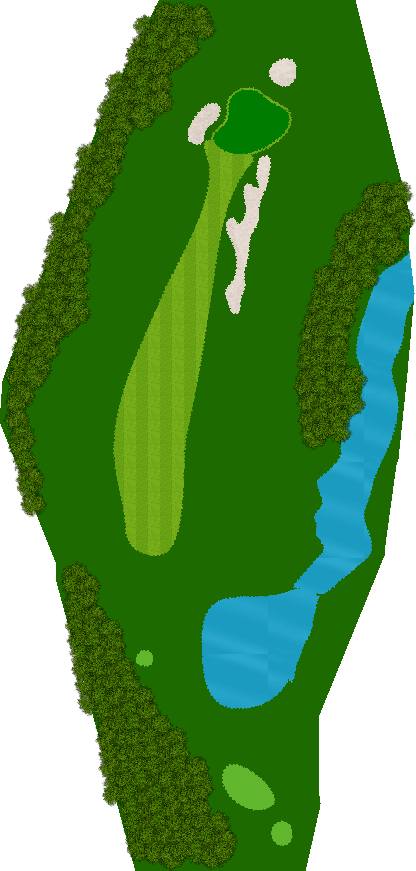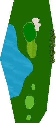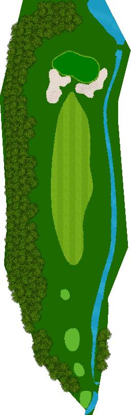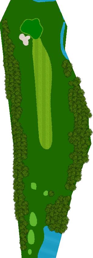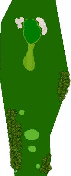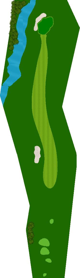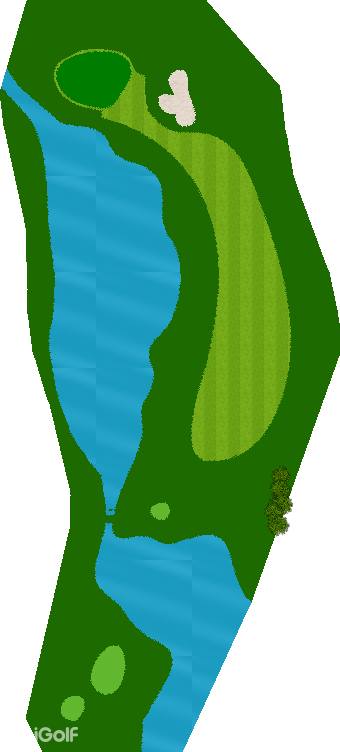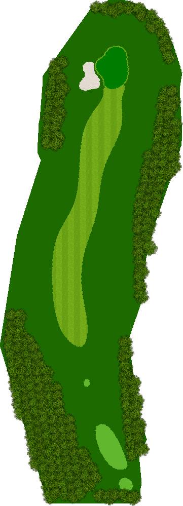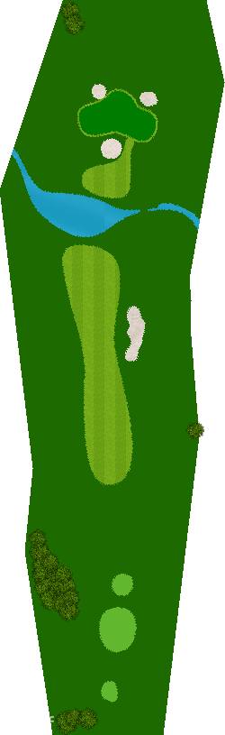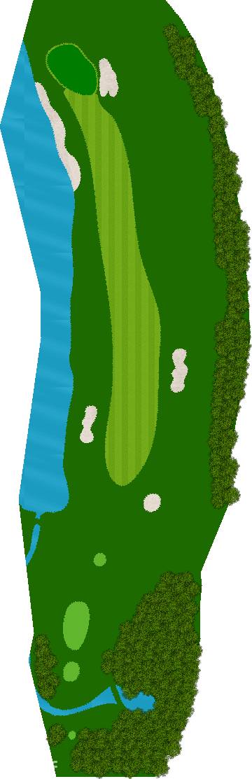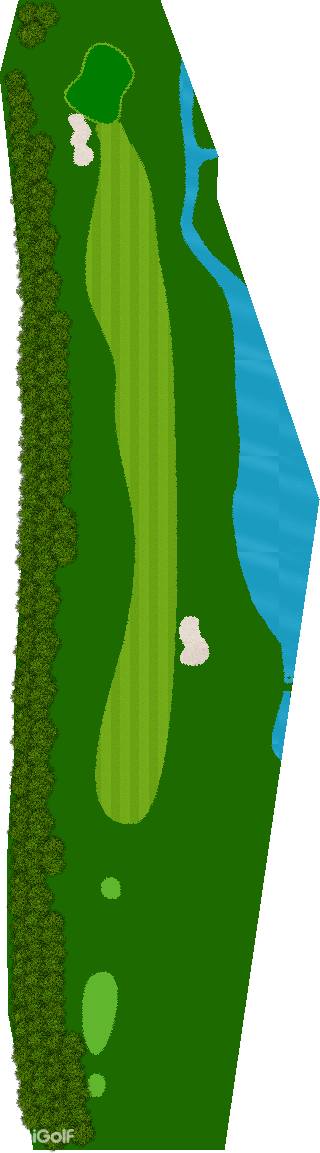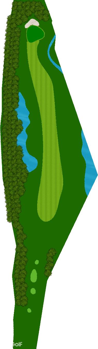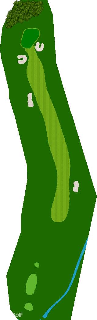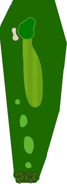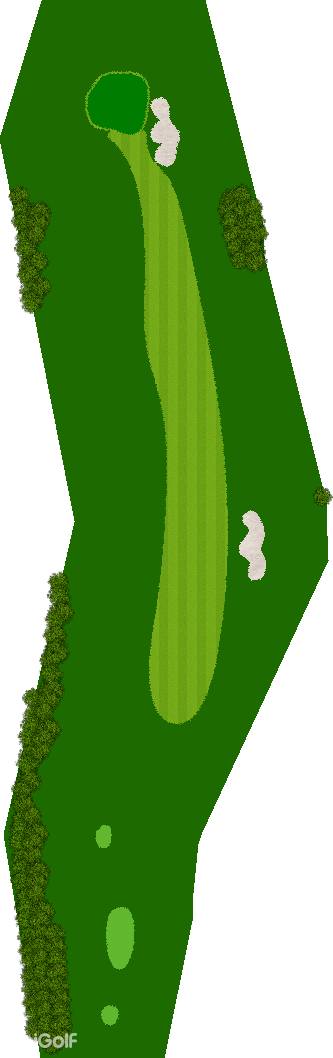 宽广而全景的27洞。在广阔而平坦的场地上,有各种大小的池塘,布局战略性。每个洞都被土丘分隔开来,尤其是东边的第一个洞是一个明亮而开放的洞,令人印象深刻。虽然布局是直线的,但两侧都被池塘、小溪和树木夹着。外观很美,但难度很高,成为了难以攻克的洞。此外,西边的第六个洞是一个距离较远的中程洞。逆风吹时,球根本不可能达到远距离,显示出一种非常艰难的设计,不太像一般公共球场。乘用高尔夫车可以进入球道(取决于天气和球场状况)。