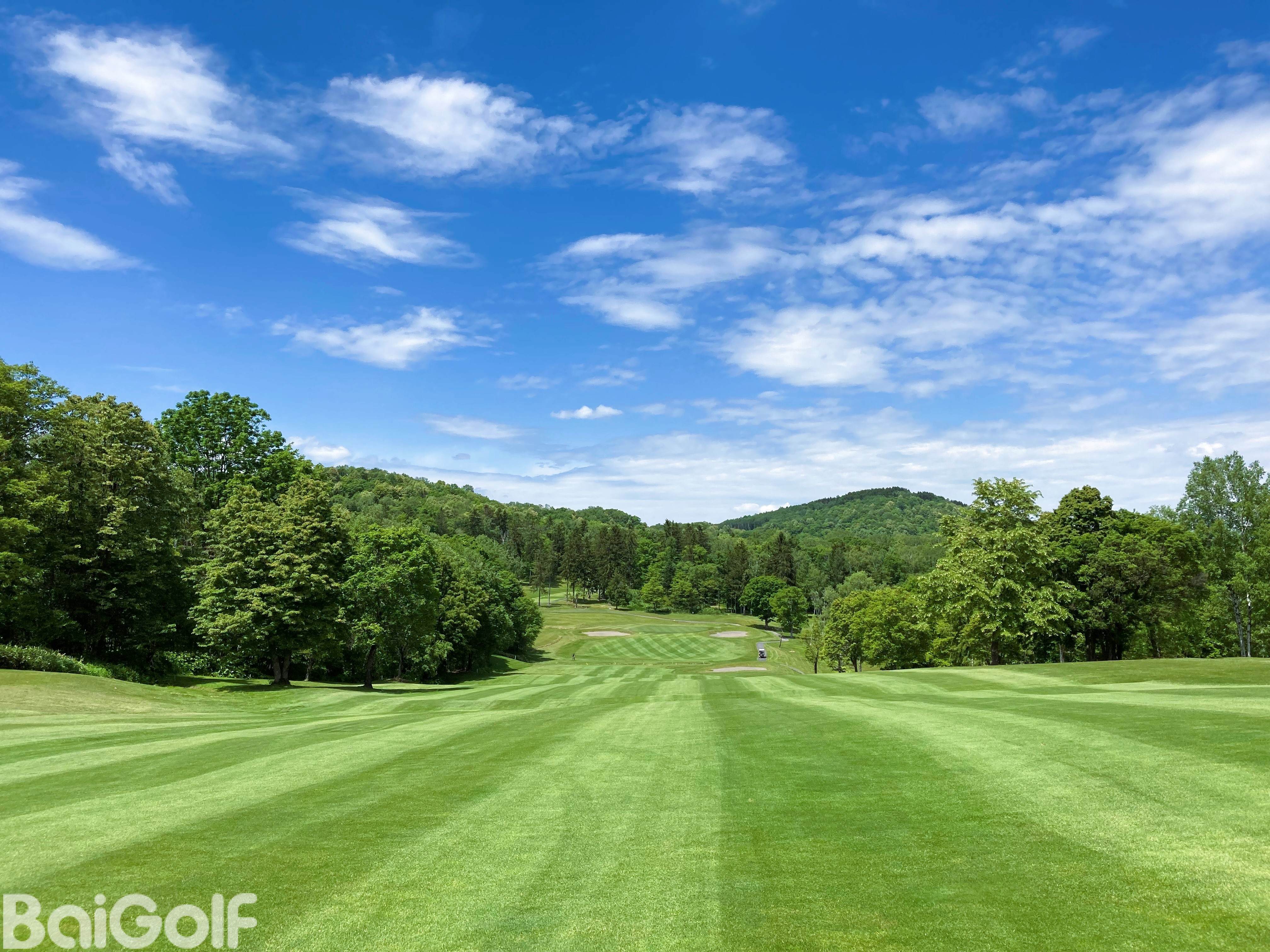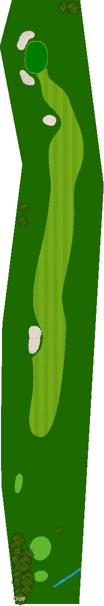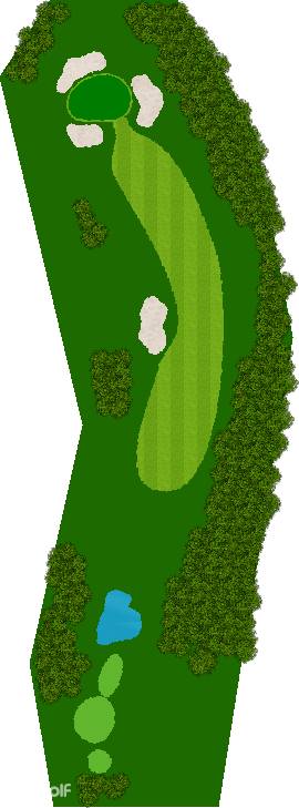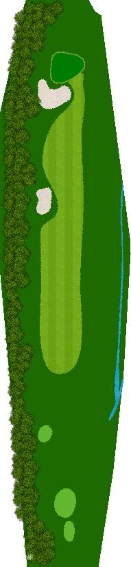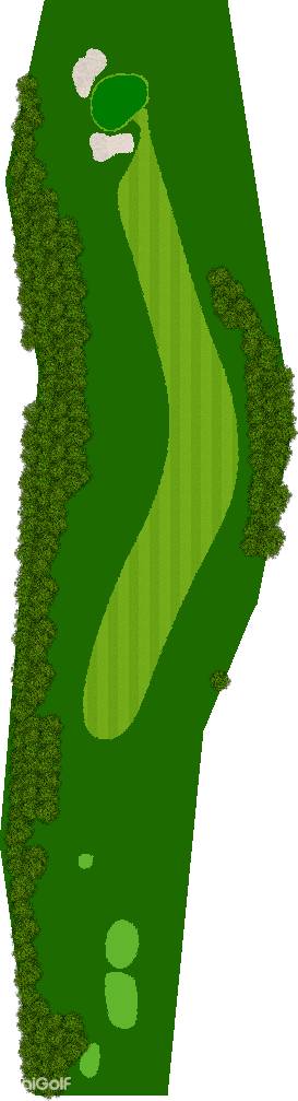 球场坐落于丘陵地带,球道宽敞开阔,各球洞的地形起伏较为平缓,整体设计对球手相对友好。然而,后九洞(IN)却别具一格,变化多端,充满挑战。特别是第 5 洞,堪称一绝。此洞距离虽短,但球手需精准击球,跨越池塘,而池塘左侧便是悬崖峭壁,稍有偏差,球便会落入悬崖之下。不仅如此,球道周围还巧妙地设置了多个沙坑,进一步增加了击球的难度和风险,使得这一洞成为了整个球场最具挑战性的球洞之一。