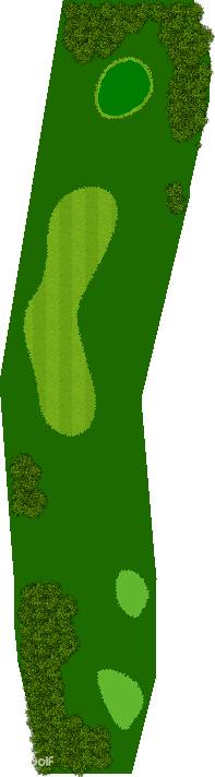 这是一个丘陵球场,球场内有几条溪流穿过,球洞就像缝在一起一样。有些球洞比较窄,但球场设计考虑到了球车通行,所以球洞间隔有所调整,每个球洞都很平坦。球场位于从石狩海湾升起的高原上,因此如何应对风力是得分的关键。距离发球台220码处竖立着一根小杆子,作为自我发挥的目标,杆子上还有一条小溪。球场果岭地势平缓,起伏不大,瞄准果岭中心应该能打出不错的成绩。