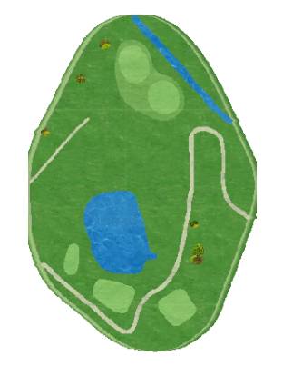 位于治水桥和羽根仓桥之间的 18 洞球场,于 2023 年 10 月 1 日,由原来的莲根草球场的 9 洞(前九洞) ,以及原来的野之花球场(7 洞)再增设 2 洞(后九洞)组成。球场巧妙地融入了池塘元素,摇身一变成为了极具战略性的球场。为球手们带来了全新的挑战和体验。球场不仅吸引了来自各行各业的高尔夫球手,更以其独特的设计和挑战性赢得了广泛的喜爱。每一次挥杆,都是对球手智慧和技巧的考验,每一次推杆,都是对球场美学的享受。