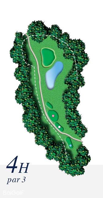 这是一个林间球场,每个球洞都很平坦,平均高差为 5 米,并由红松树隔开。总的来说,球场较长,许多球洞的平坦程度让人感觉得高分很艰难。第 9 洞和第 18 洞都是长 3 杆洞,如果用力过猛,就会把球打得很重,因此在这些球洞打球需要非常小心。