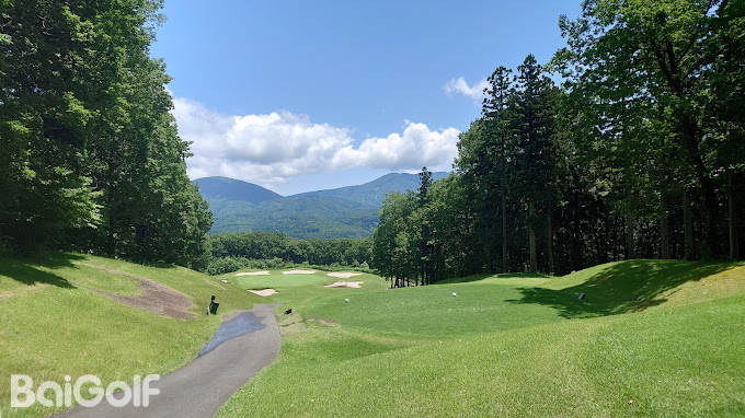 这是一个林间球场,虽然平坦,但充分利用了自然森林,具有很高的战略性。从球场可以远眺妙高山、黑姬山、斑尾山,您可以在大自然的怀抱中享受高原高尔夫的乐趣。所有的障碍都经过精心设计,可以轻松确认打球策略,即使是技术一般的球友独自打球也不会感到困难。球场里第17洞独具特色,正面可以看到妙高山,左侧是水量丰富的溪流,是位置最佳的球洞。