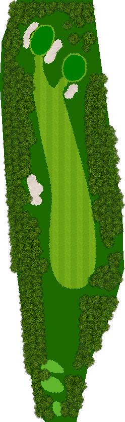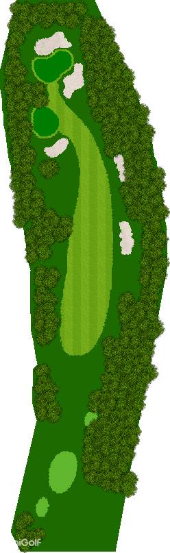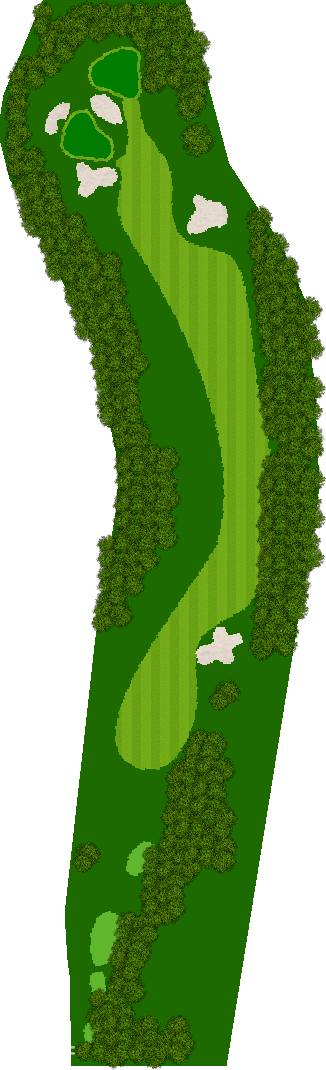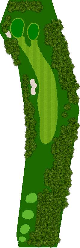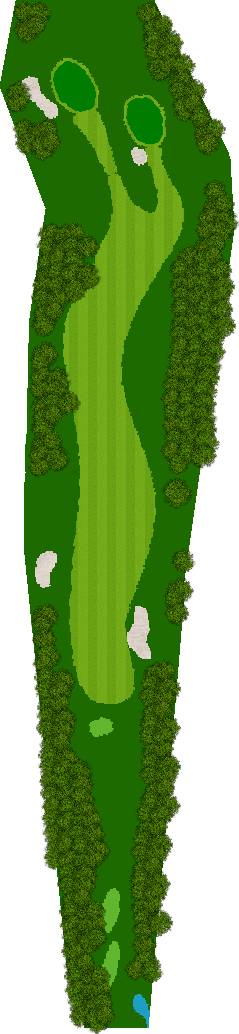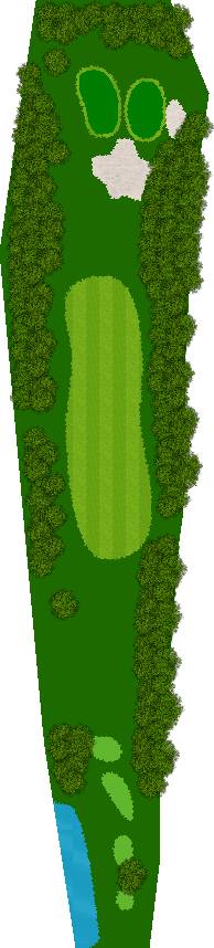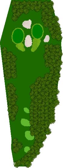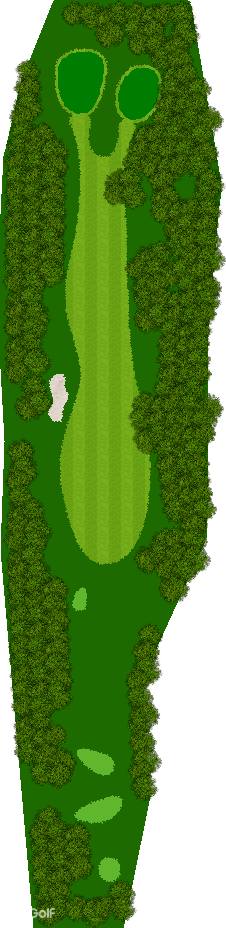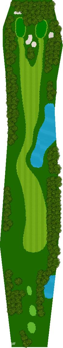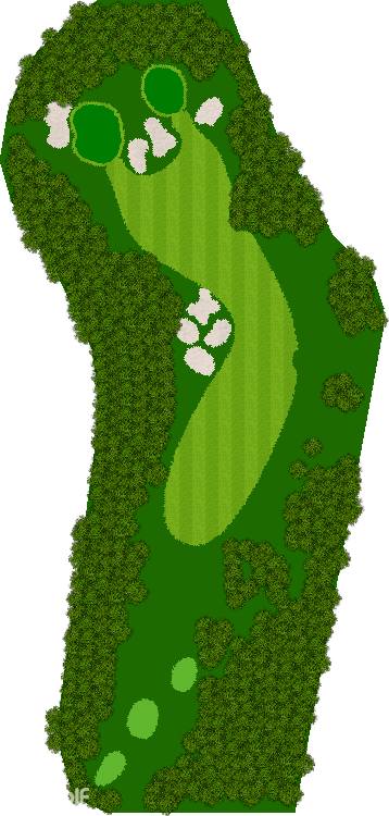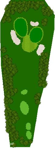 穿越美丽森林、规模宏大的丘陵球场,球场背景是阿尔卑斯山,利用天然斜坡而设计,所以球的落点会有微妙的变化,如果不注意这些变化,很可能会失误连连。第 7 洞是一个短 4 杆洞,横跨河流和湖泊;第 18 洞是一个长 4 杆洞,横跨湖泊。在平坦的球洞中,第 14、15、17 和 18 洞也与湖泊有关,如何克服这些障碍是得分的关键。