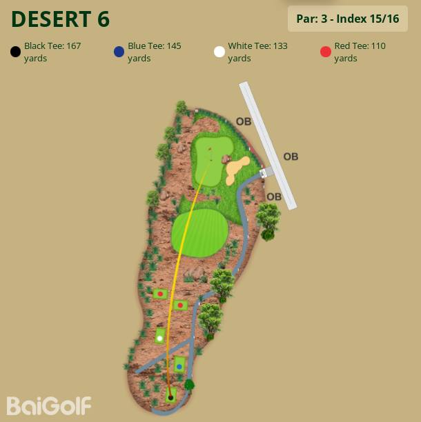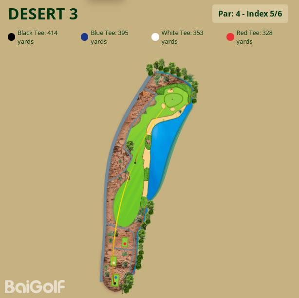 场内不乏众多的湖泊,灌木丛以及起伏的绿地,因此每一个场地都具有其独特的魅力并能够带来相应的挑战。其中最令人敬畏的莫过于拥有更长更窄球道的沙漠球场,线性排列且复杂多变的沙坑地形和大量的沙地要求球友们具备高超精准的球技以及卓越的前瞻能力。
