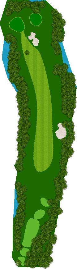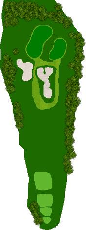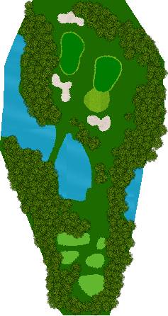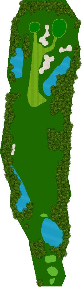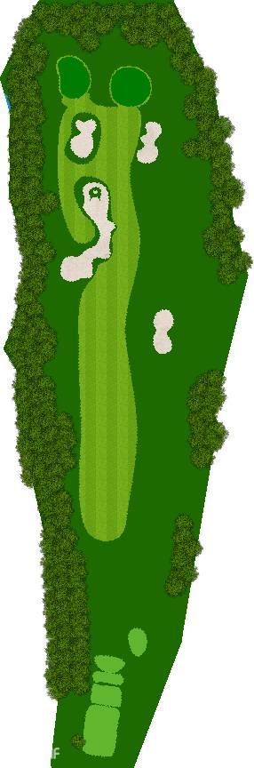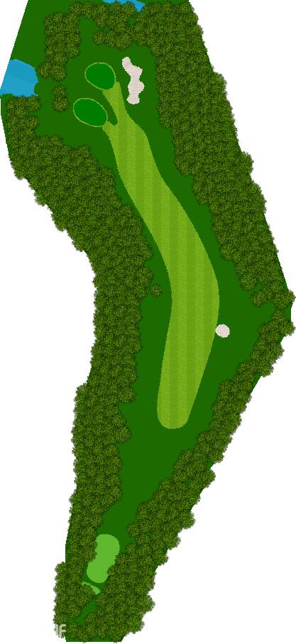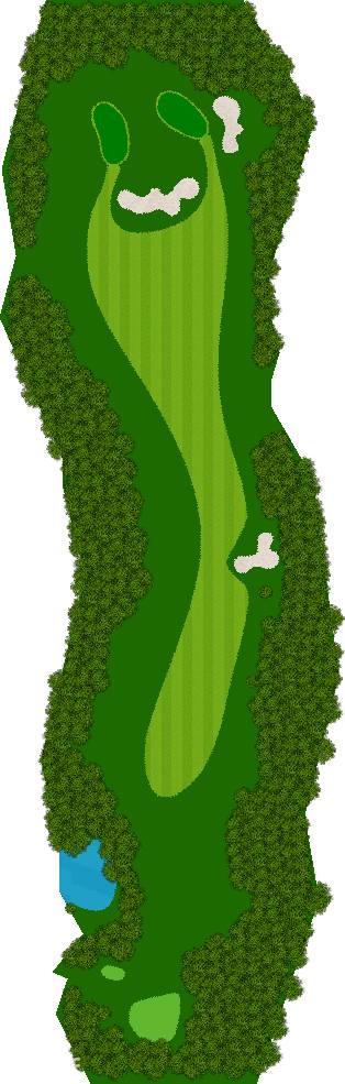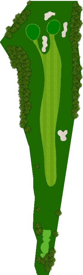 球场建在起伏柔和的丘陵之上,四周被高大挺拔的树木环绕,仿佛被大自然的怀抱紧紧拥抱着。球道宽敞开阔,宛如一条条绿色的绸带,蜿蜒在丘陵之间,给人一种宏大而壮观的感觉。阳光洒在球道上,绿草如茵,光影交错,美不胜收。