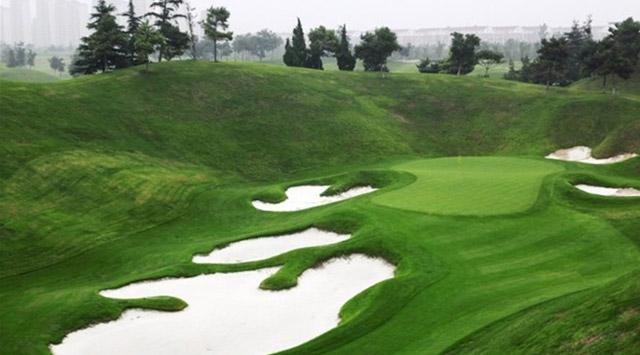 苏州太阳岛高尔夫俱乐部座落在苏州工业园区跨塘镇阳澄湖南部。苏州太阳岛高尔夫俱乐部球场距离长,坡度很大。有很多盲洞,风也比较大,可以给球客以华东地区一般球场没有的全然不同的感受。有LINKS风格,每个球道基本上都是两山夹一沟的设计,非常考验开球和铁杆,如果发球没有落在球道上,从第2杆开始的每一杆都会打的非常的辛苦。该球场由世界著名大师Nelson·Haworth所设计,对于热爱GOLF运动的球友来说,这所球场绝对应该去尝试和挑战一下。