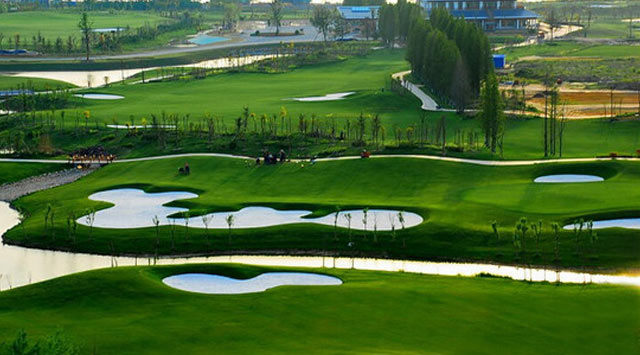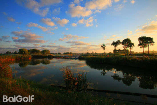盐城射阳岛高尔夫球会位于黄海之滨素有丹鹤(国家丹顶鹤旅游景区)之乡的射阳县境内,坐落在射阳河口风景区,与国家AAA级旅游景点、江淮第一古刹息心寺和前苏联专家援华建造的近40孔射阳河闸毗邻,距射阳县城区3公里,距盐城市市区、盐城火车站、盐城国际机场仅有45分钟的车程,交通十分便利,地理位置优越,是体育旅游的理想去处。盐城射阳岛高尔夫球会由澳大利亚著名设计师Mr.Lesc Watts(莱斯.沃慈先生)设计,其设计融合了传统自然、豪华富丽和细腻典雅的风格,整个球场,三面环水,动静相宜,共有18洞,标准杆72杆,球道总长7311码,占地1100亩。18个球洞,18种不同的感受,兼顾了击球趣味与景观的平衡,果岭高低起伏,极富挑战性和刺激性,是华东地区难度系数最高的平原球场,让高尔夫球员在运动中尽情享受击球的乐趣。尤其是第4球洞,亭台楼榭,垂柳婆娑,溪流交错,沙白草绿,绿意与蓝天交融,自然风景与人造景致相得益彰,令人如处仙境,远看宛如一幅水墨丹青的国画。