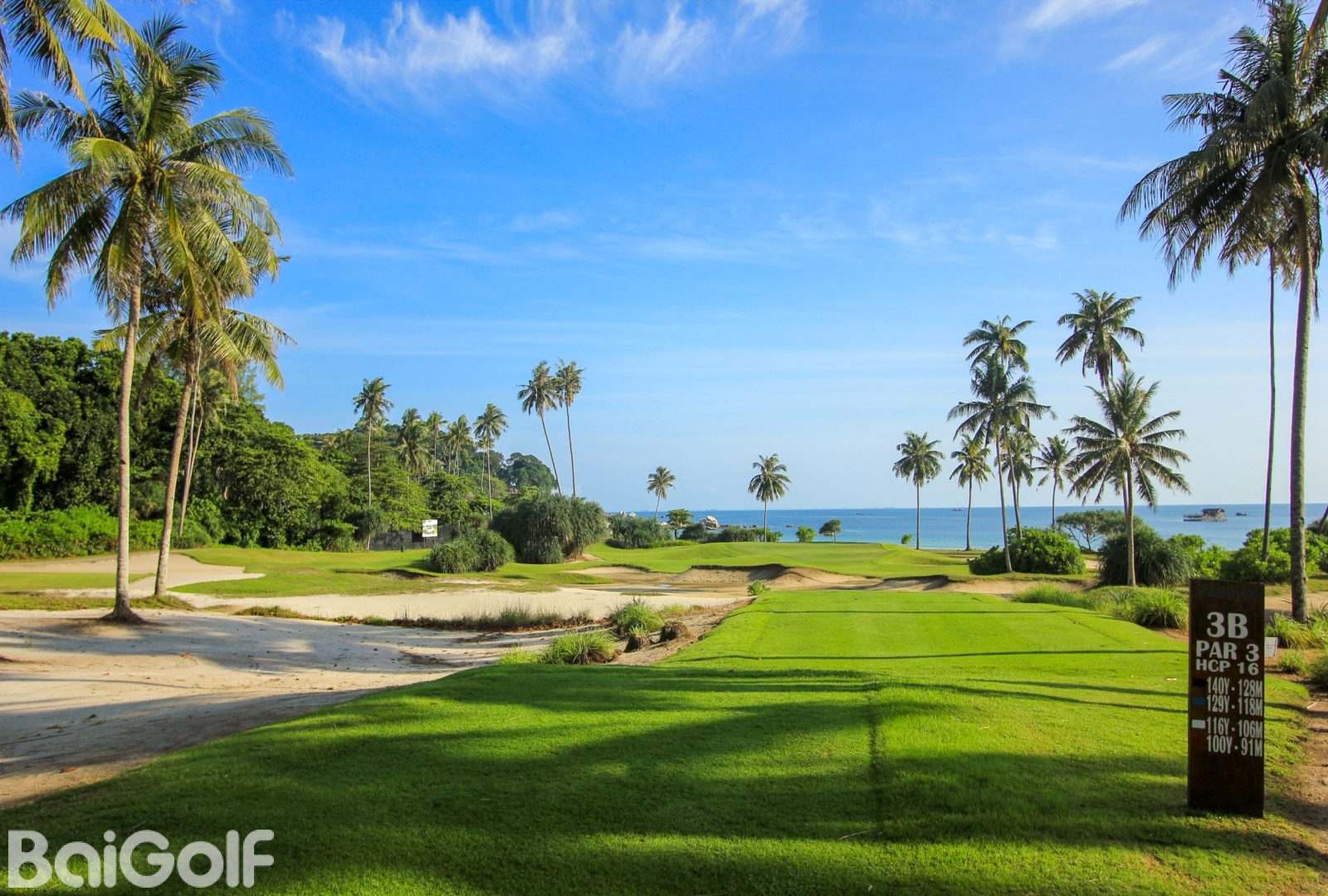 高尔夫球场的第 2 至 4 洞可欣赏到独特的海景,第 6 至 8 洞则环绕着宁静的泻湖,第 9 洞是蜿蜒上坡的 4 杆洞,朝向俱乐部会所,对高尔夫球手来说极具挑战性。10 至 15 号洞穿过茂密的丛林和独特的岩层。高尔夫球场的亮点尚未到来,因为长 4 杆洞 16 号洞穿过丛林,直达大海。到达倒数第二个标志性的 17 号洞时,高尔夫球手面临的挑战是直接从海面上方的发球台上击球,越过壮观的天然岩层。
