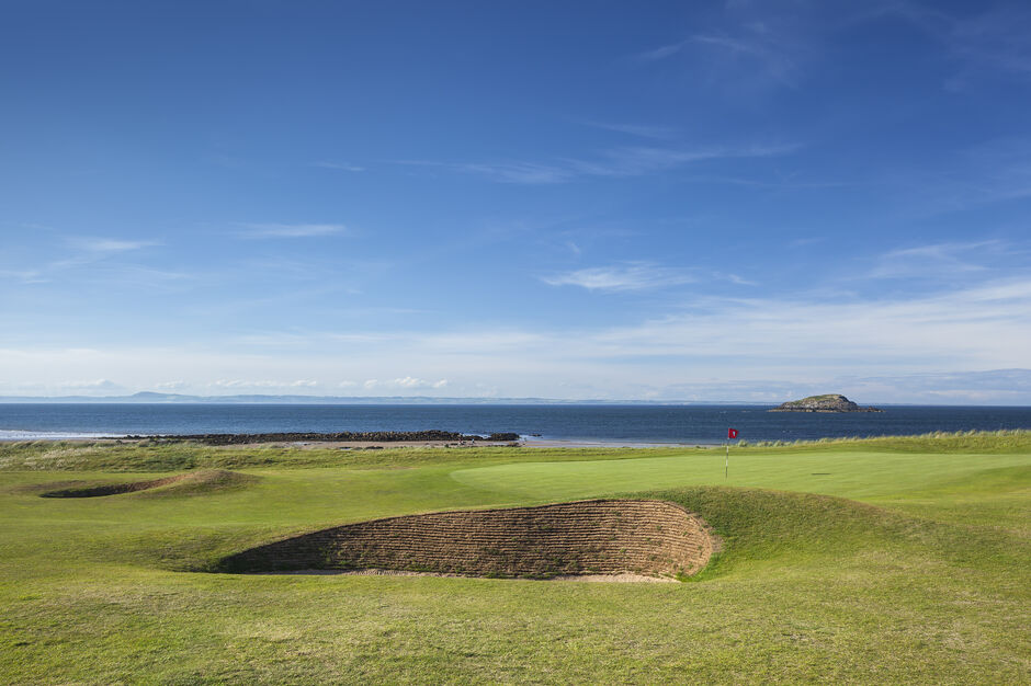 壮观的自然景观:球场毗邻波澜壮阔的北海,海平面与球道齐平,使得每一位球手都能在击球间隙,饱览那令人心旷神怡的海景。不远处的“Bass Rock”巨礁,作为当地的自然地标,其上聚集的8万只海鸟,更是生态多样性的生动展现。