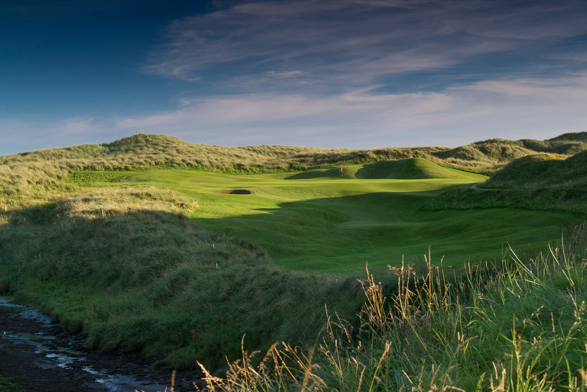 苏格兰林克斯球场中的佼佼者,沿着高高的悬崖底部延伸,紧邻东面的高大沙丘挡住了北海海岸线的视线。球场内的球洞位于被称为 “矮墩墩的沙丘 ”之间。