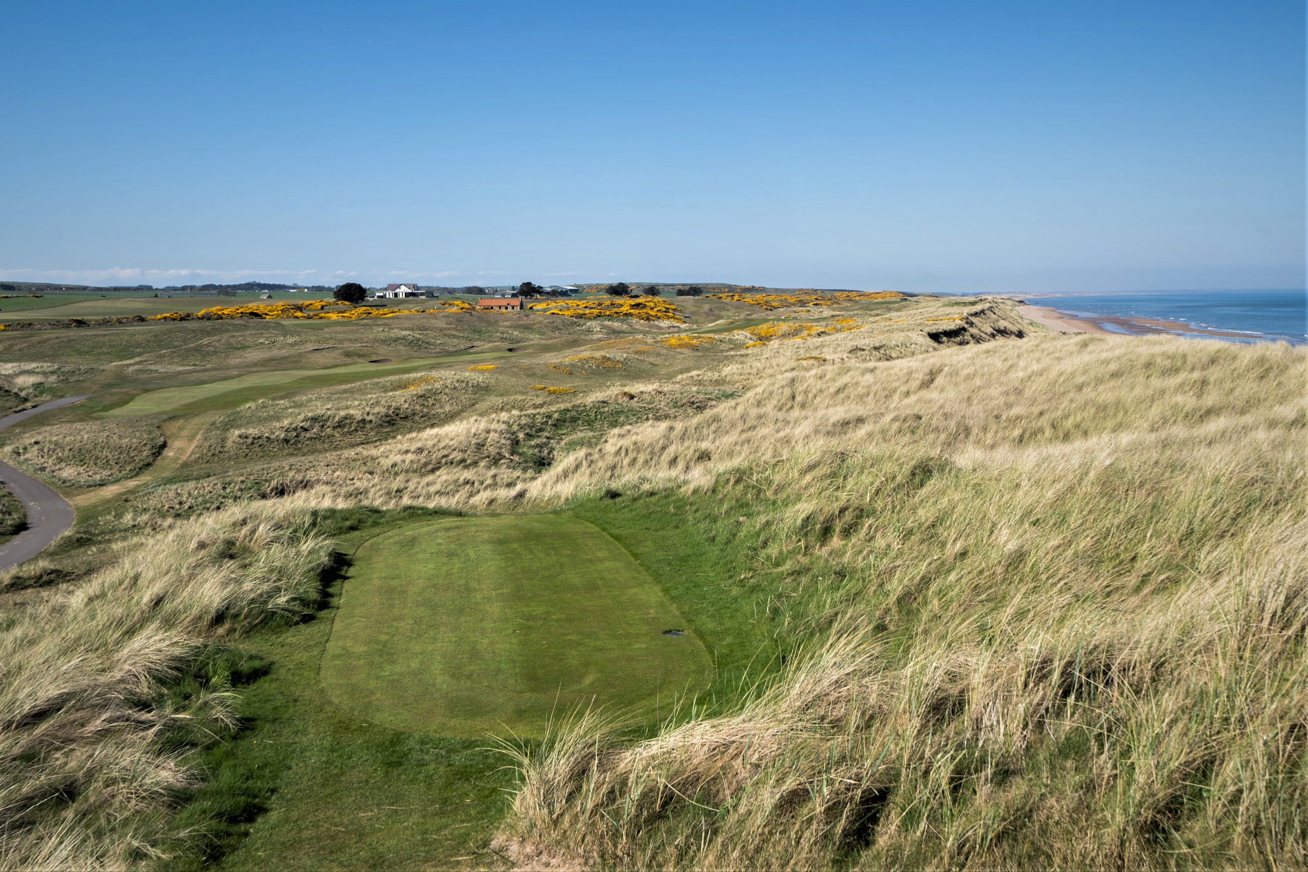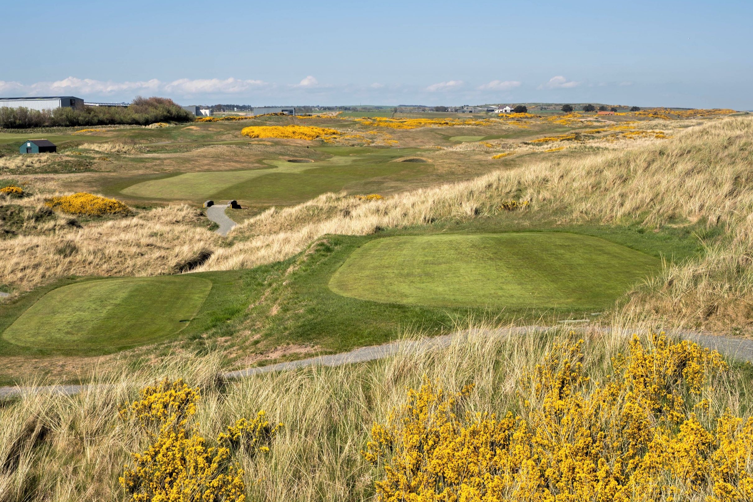 无敌海景的后九洞:后九洞位于高坡之上,沙丘不再遮挡视线,无敌海景尽收眼底。为了应对狂风的挑战,球道设计得极为宽敞,并配以舒缓的起伏,保障了球场的可打性。2005年在这里举办的the Senior Open,其晋级线的高难度,更是证明了球场的挑战性。