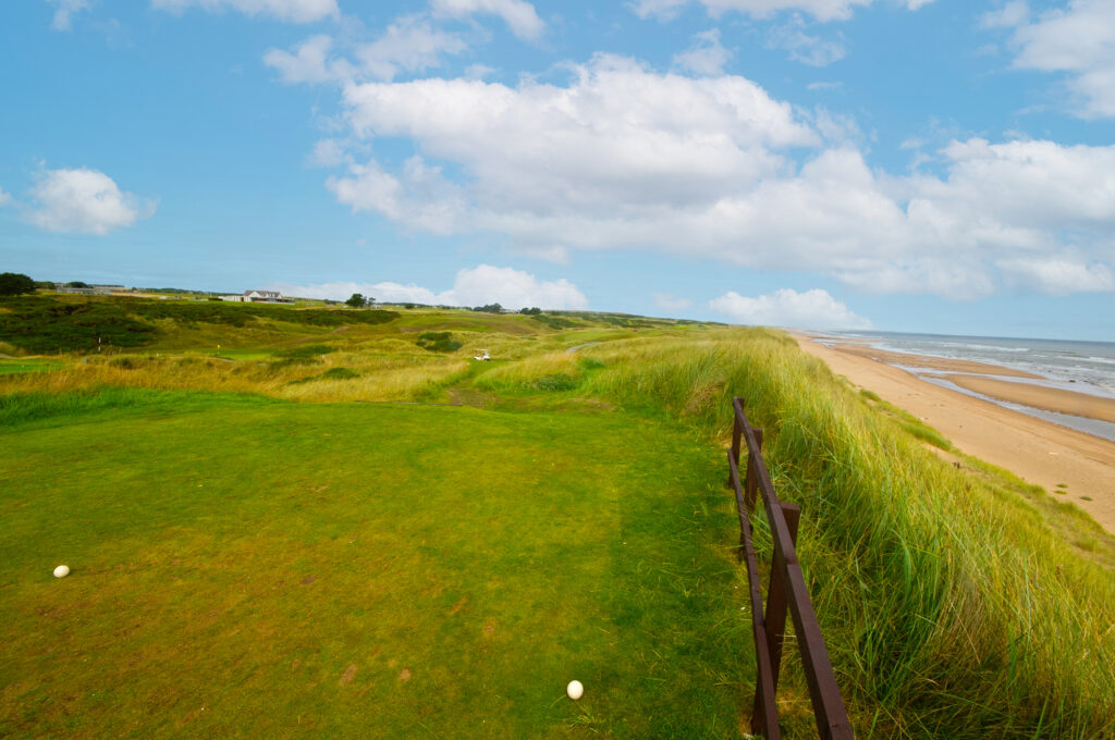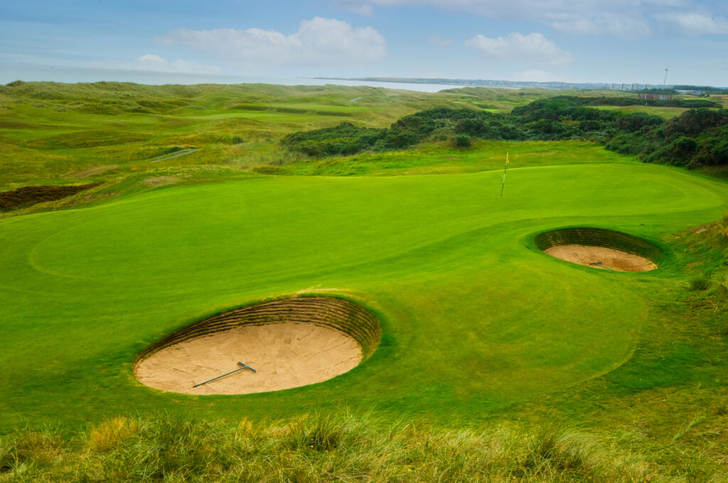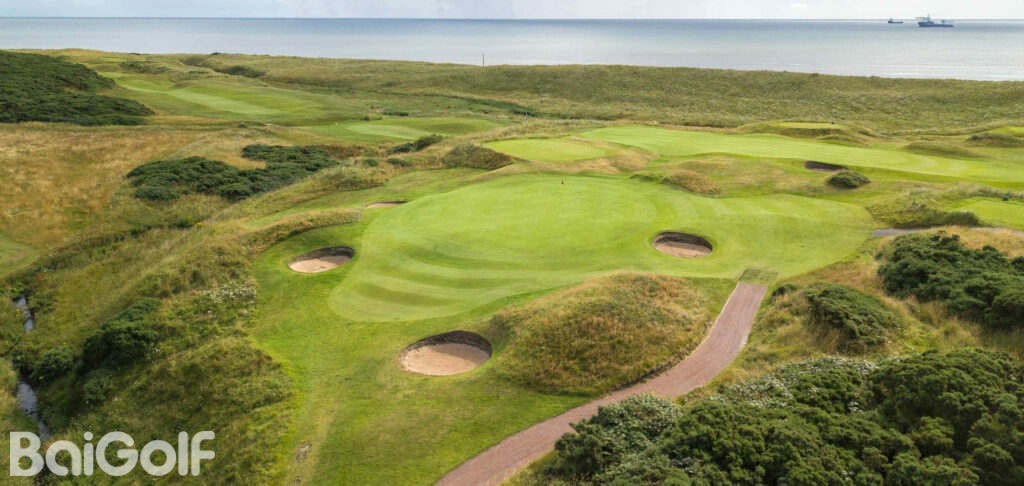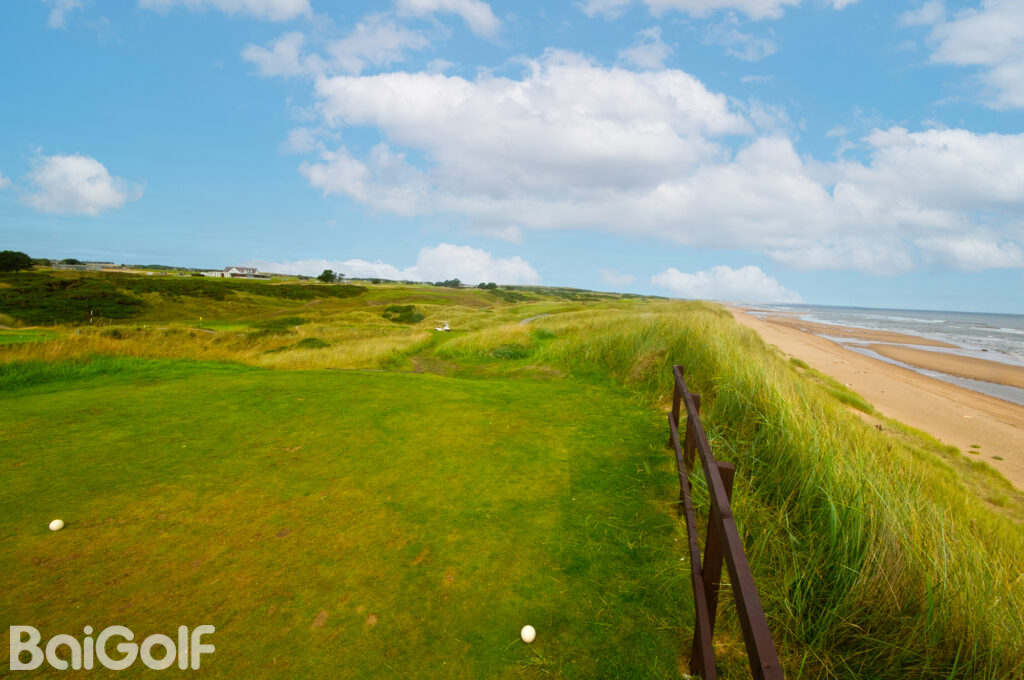 球场的自然之美:莫卡林克斯球场建在海边沙丘之上,地形虽有起伏,却并不剧烈。沿海的前九洞设计变化丰富,趣味性强,为球手们提供了一次难忘的打球体验。夏季时分,球道草呈现出棕黄色,坚硬而快速,加之正面的大坡阻挡视线,使得每一次击球都充满了挑战。