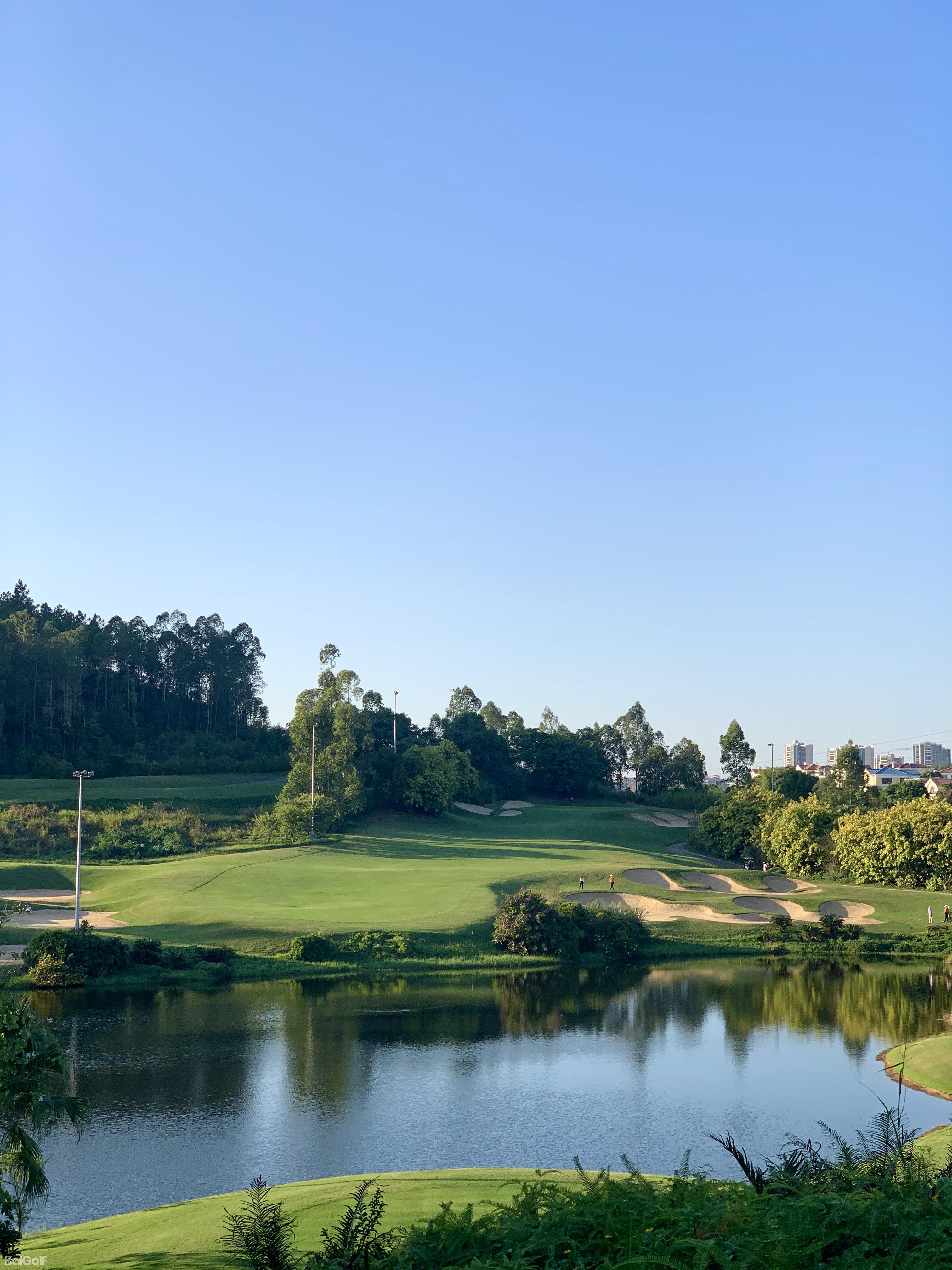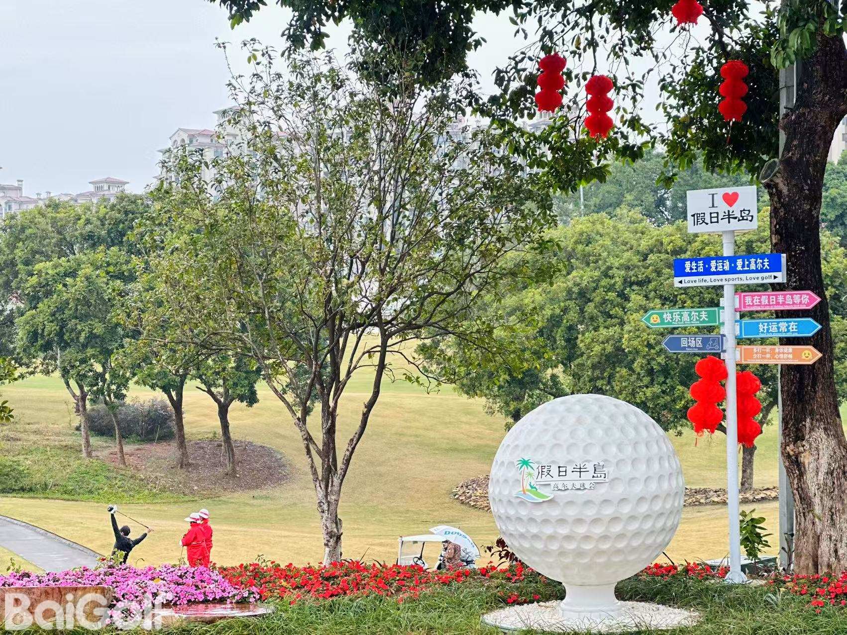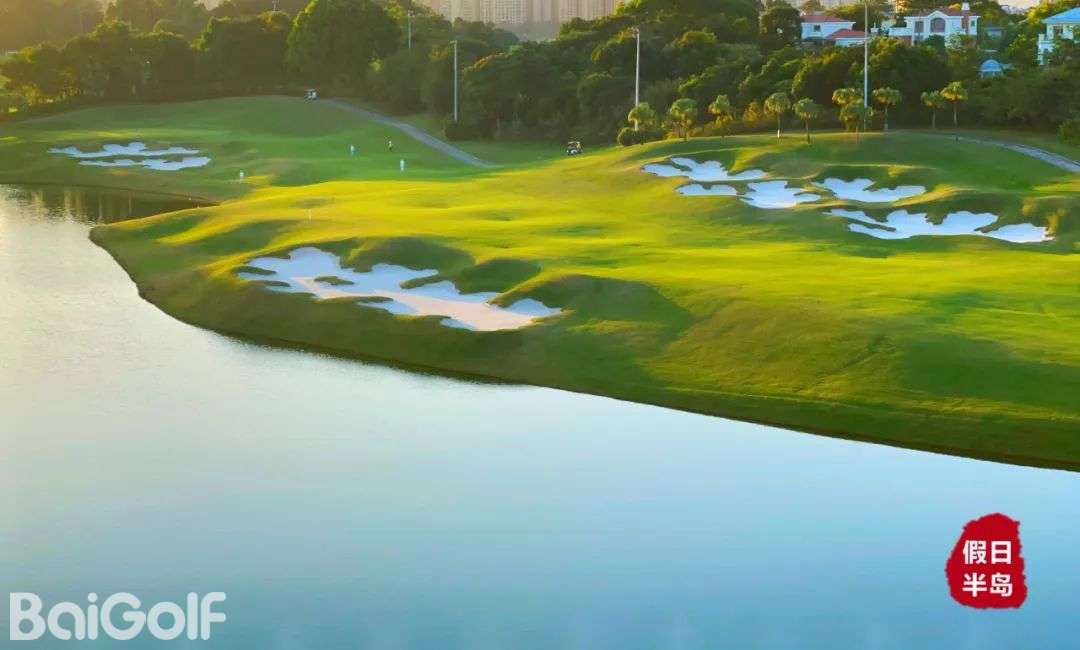 假日半岛高尔夫球会座落在蓝天碧水的清远市清城区石角镇花兜水库间, 距离广州市中心五十公里。借助森林、湖泊自然优势,以湖景和山景为题材,由国内资深设计师梁国坤 先生精心设计,球场以智能型具挑战性特点,充分利用大自然为基础,达到“改造自然,恢复自然”。借助磅礴的原始生态环境,全新演绎,球道布局合理、运作流畅,满足不同水平的高尔夫球爱好者。