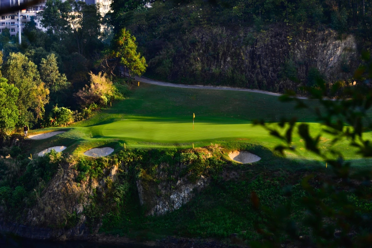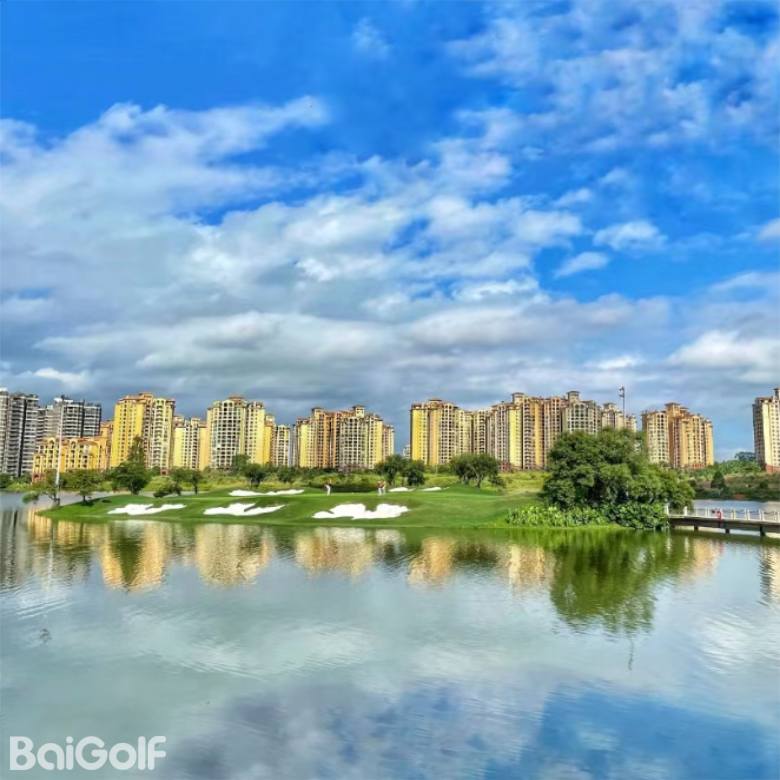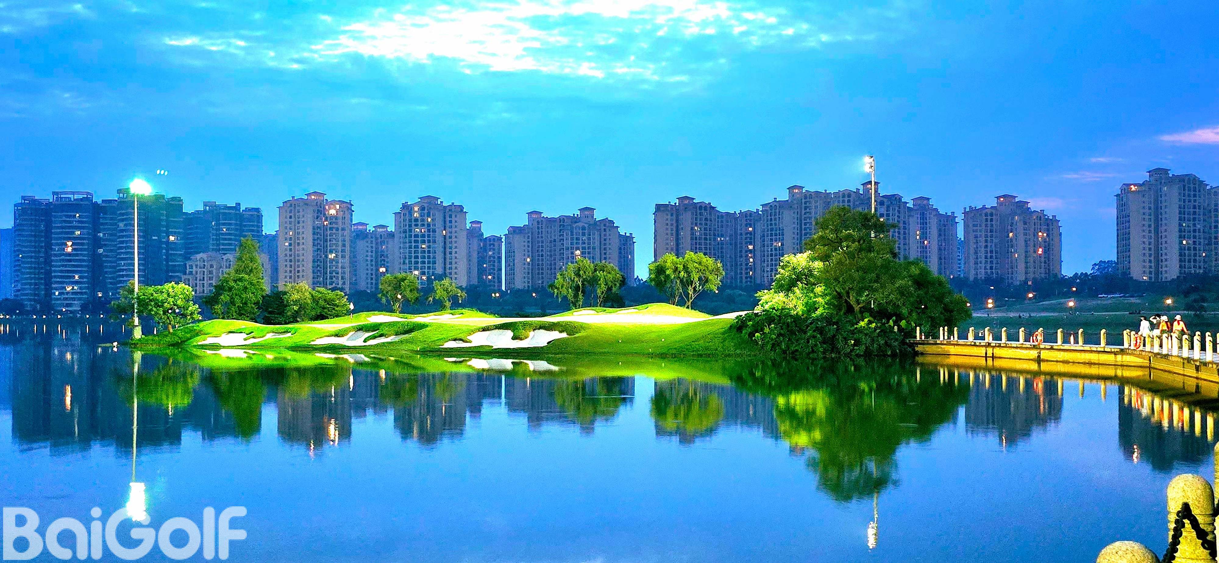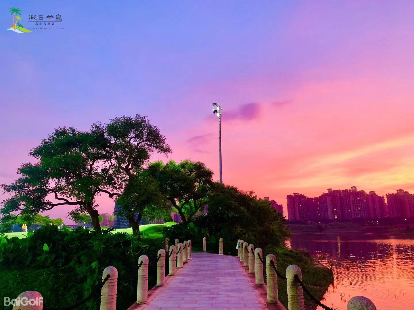 假日半岛高尔夫球会座落在蓝天碧水的清远市清城区石角镇花兜水库间, 距离广州市中心五十公里。借助森林、湖泊自然优势,以湖景和山景为题材,由国内资深设计师梁国坤 先生精心设计,球场以智能型具挑战性特点,充分利用大自然为基础,达到“改造自然,恢复自然”。借助磅礴的原始生态环境,全新演绎,球道布局合理、运作流畅,满足不同水平的高尔夫球爱好者。