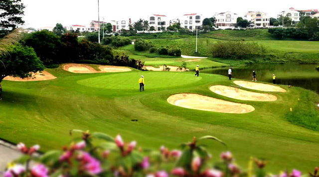 假日半島高爾夫球會座落在藍天碧水的清遠市清城區石角鎮花兜水庫間, 距離廣州市中心五十公裏。借助森林、湖泊自然優勢,以湖景和山景爲題材,由國內資深設計師梁國坤 先生精心設計,球場以智能型具挑戰性特點,充分利用大自然爲基礎,達到“改造自然,恢複自然”。借助磅礴的原始生態環境,全新演繹,球道布局合理、運作流暢,滿足不同水平的高爾夫球愛好者。