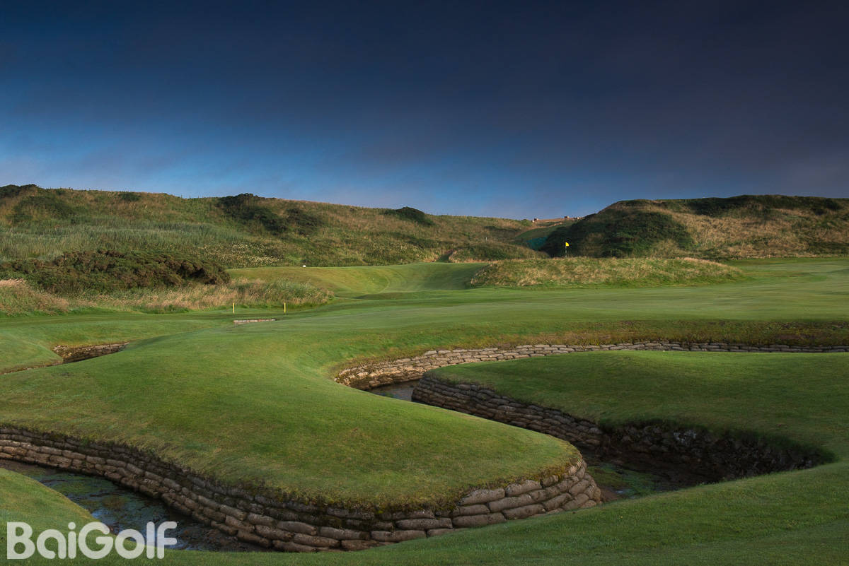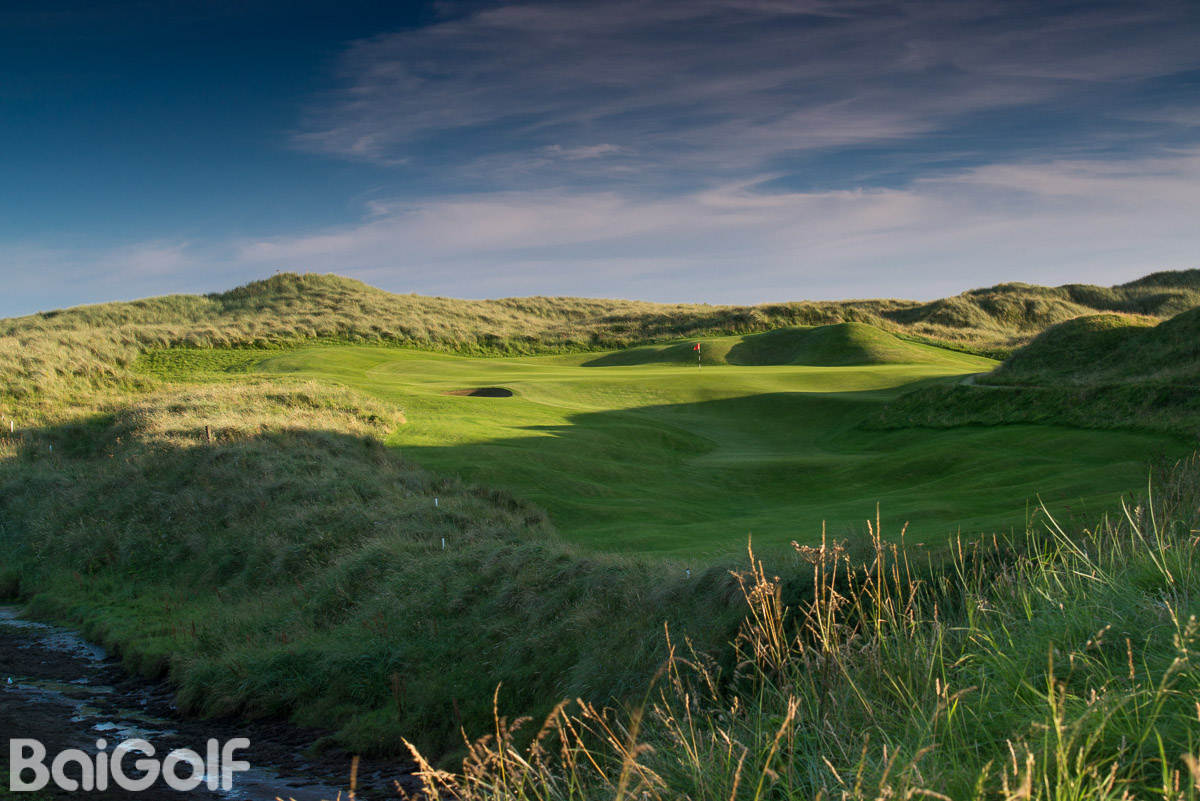 苏格兰林克斯球场中的佼佼者,沿着高高的悬崖底部延伸,紧邻东面的高大沙丘挡住了北海海岸线的视线。球场内的球洞位于被称为 “矮墩墩的沙丘 ”之间。