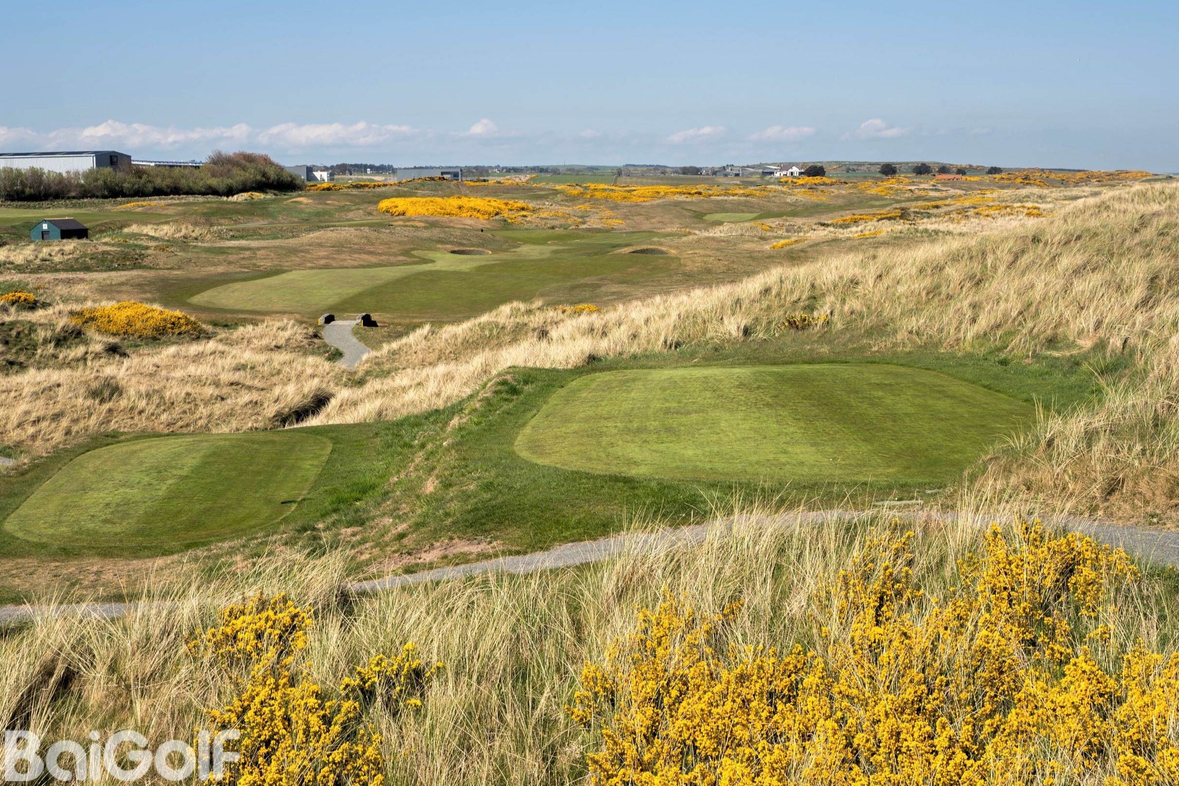 无敌海景的后九洞:后九洞位于高坡之上,沙丘不再遮挡视线,无敌海景尽收眼底。为了应对狂风的挑战,球道设计得极为宽敞,并配以舒缓的起伏,保障了球场的可打性。2005年在这里举办的the Senior Open,其晋级线的高难度,更是证明了球场的挑战性。