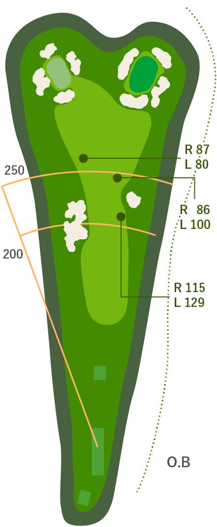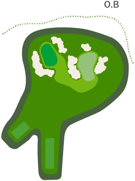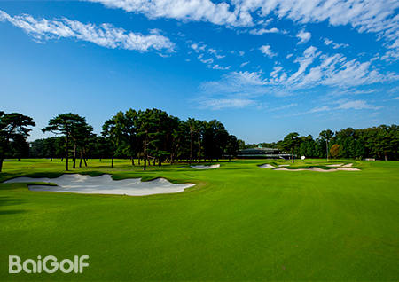 这里有很深的沙坑和高高的果岭,所以任何技巧都行不通。往前走,右侧第五个果岭前有一个池塘。第六洞左侧为困难洞,第九洞右侧为狗腿洞。第11洞是凸起的果岭,第13洞是长长的S形洞,第14洞则全部是沙坑在果岭前,各有韵味,饶有趣味。现在的狭山球场是由当时的会员大谷光明设计的,其中一些球洞是仿照朝霞球场的。目前的球场已经进行了多次改造。俱乐部会所由雷蒙德先生设计,于 1964 年建成,作为俱乐部成立 50 周年庆典的一部分。