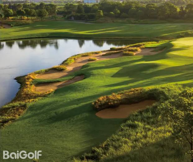 银涛球场各球道走势跌宕起伏,线条对比强烈,淋漓尽致地展现了高球运动所特有的刚柔并济之美,其创意十足的设计将平原球场的单调一扫而光。整个球场溪流纵横,湖泊密布,更有大片的野生芦苇与百合丛。每当清风掠过湖面,树影婆娑,娴静的睡莲不禁轻盈摇曳,几只受惊的白鹭则骤然飞起。配合交织的溪流与局部地貌,球场上特别建造了多款自然、奇趣的小型桥梁与亭榭。石桥质朴,木桥温馨,欧式小铁桥则典雅曼妙,而更有野趣盎然的漫水式木桥与溪水“亲密接触”,令人流连忘返。