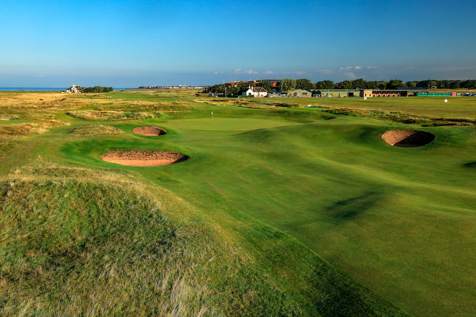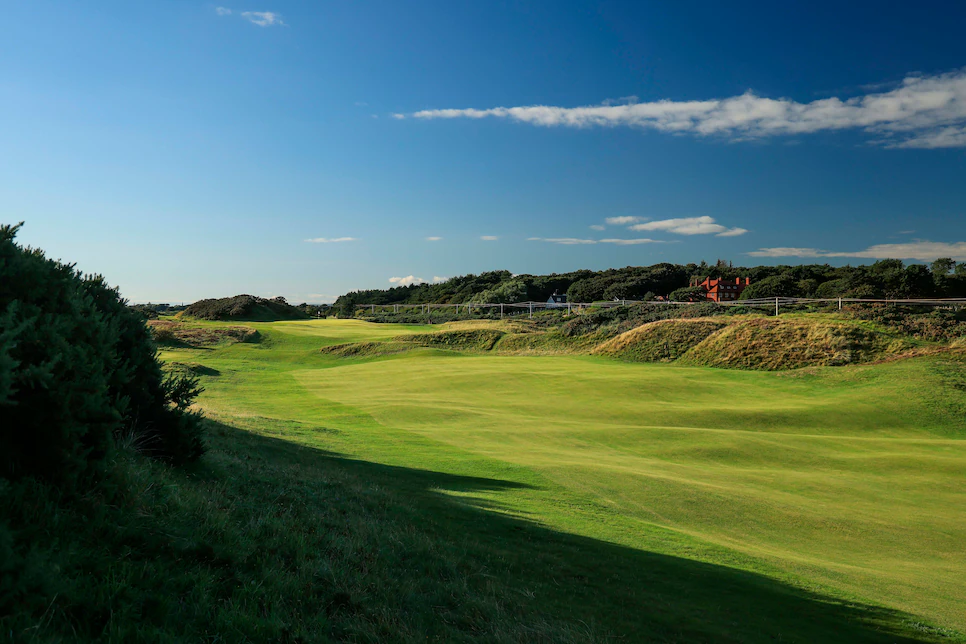 皇家特伦高尔夫老球场,是一个适合各个水平的高尔夫球手的球场,但是球场经常刮起大风,所以具有一定的挑战性。如果在第九洞时顺风,那么回程的九洞即使不是狂风大作,也是在凛冽的微风中挥杆。特伦球场的历史可以追溯到 1878 年,100 年后被授予皇家称号。很少有人知道,这里著名的 123 码第 8 洞--邮票洞(Postage Stamp)是英国高尔夫公开赛中最短的洞,最初是一个 3 杆盲洞,现在的果岭直到 1910 年才建成。2016 年,皇家特伦球场上演了公开赛历史上最具戏剧性的对决之一,亨利克-斯滕森战胜菲尔-米克尔森,赢得个人首个大满贯赛冠军。球场于 2024 年举办了第十届公开赛。