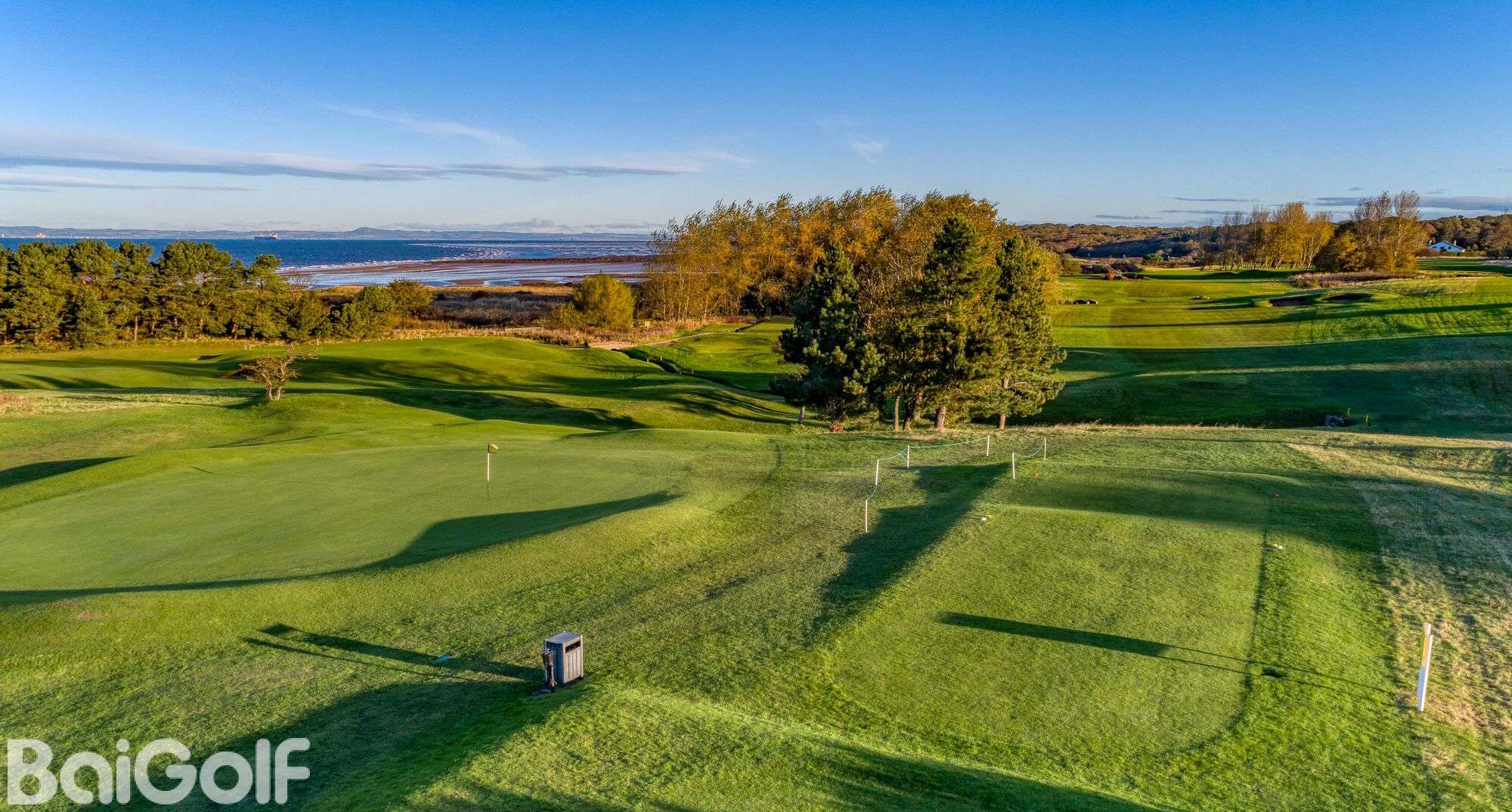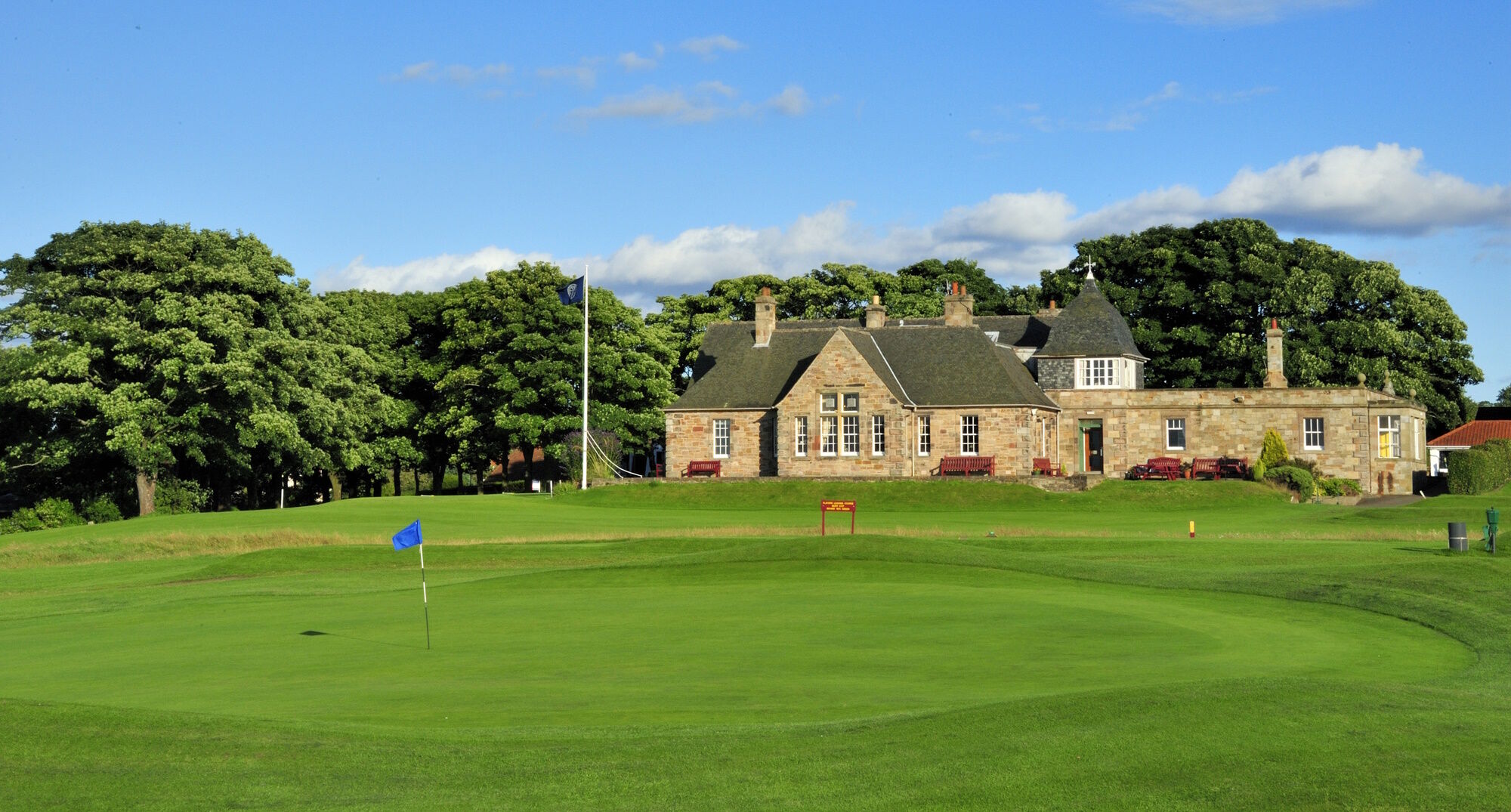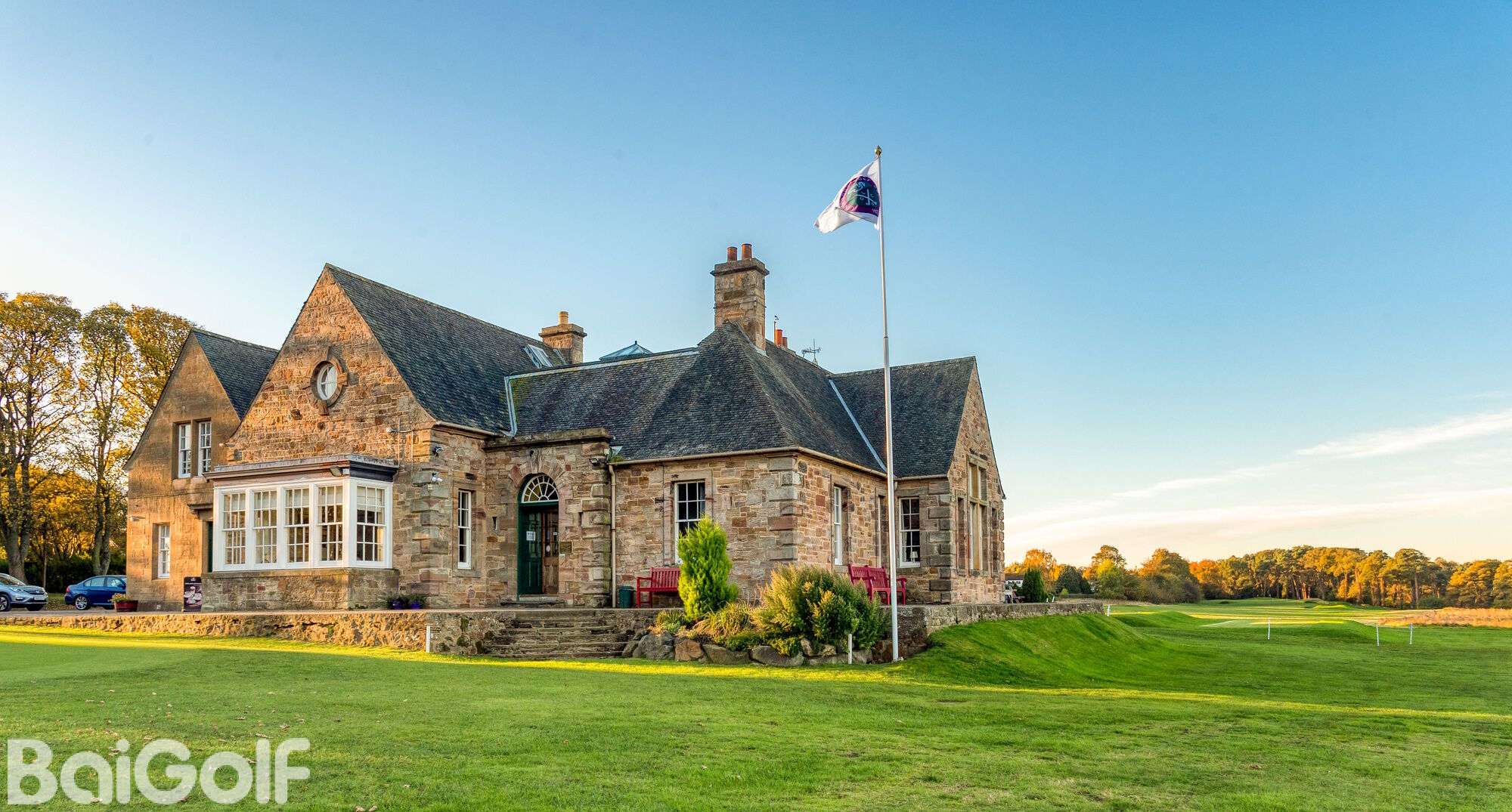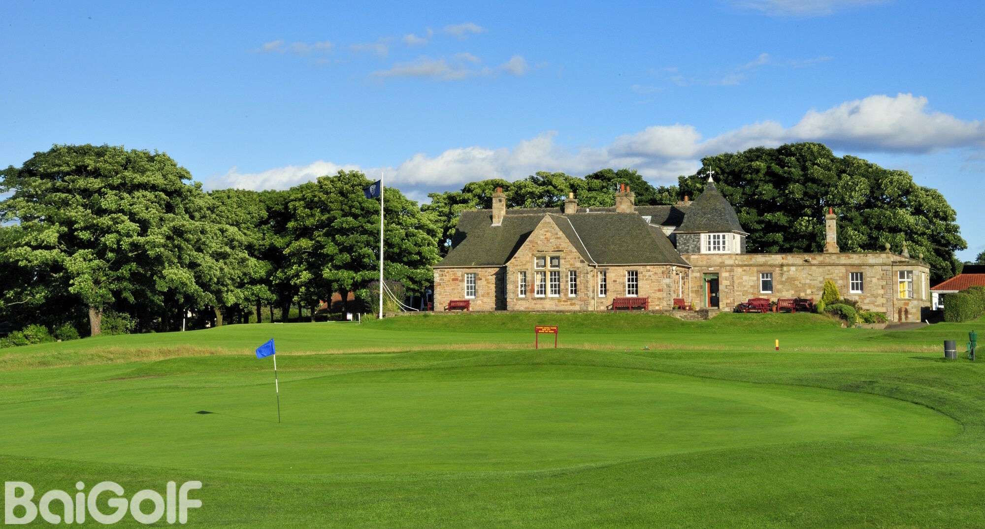 球场采用传统布局,第一个发球台距离更衣室仅几步之遥,第 18 洞果岭位于会所旁边,西向露台区视野开阔,法夫、爱丁堡和亚瑟王座的美景一览无余。这是打完一轮球后欣赏日落的好地方。独特的是,第 13 洞果岭距离会所仅 80 码,非常适合时间有限或觉得 18 个洞太多的人。会所东侧有练习果岭和练习网,供百高球友在前往第一个发球台之前放松肌肉并寻找打球的感觉。