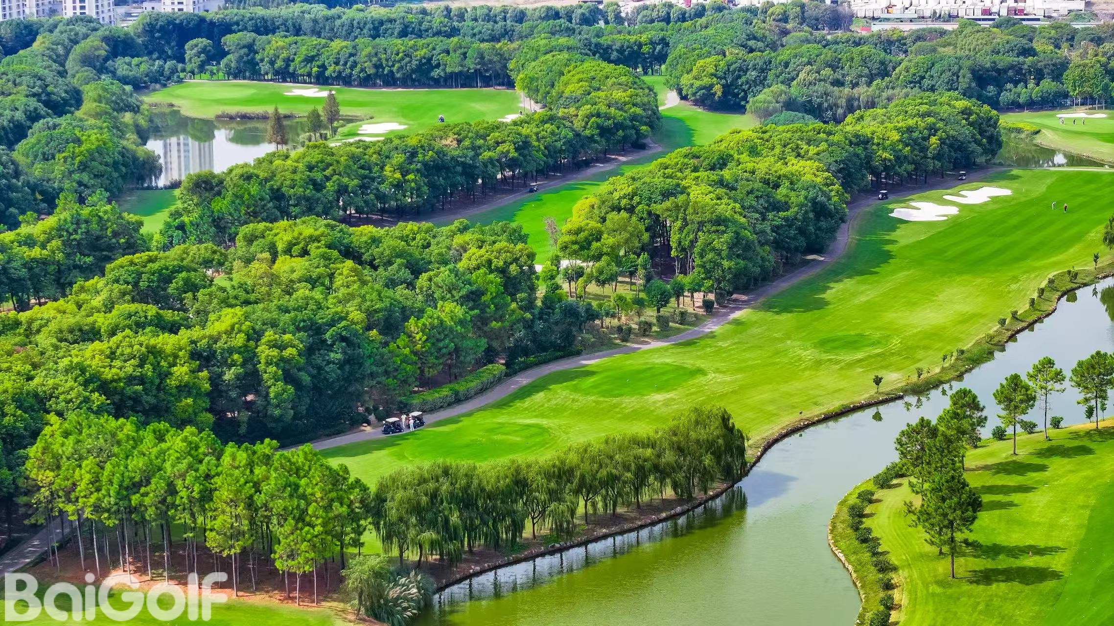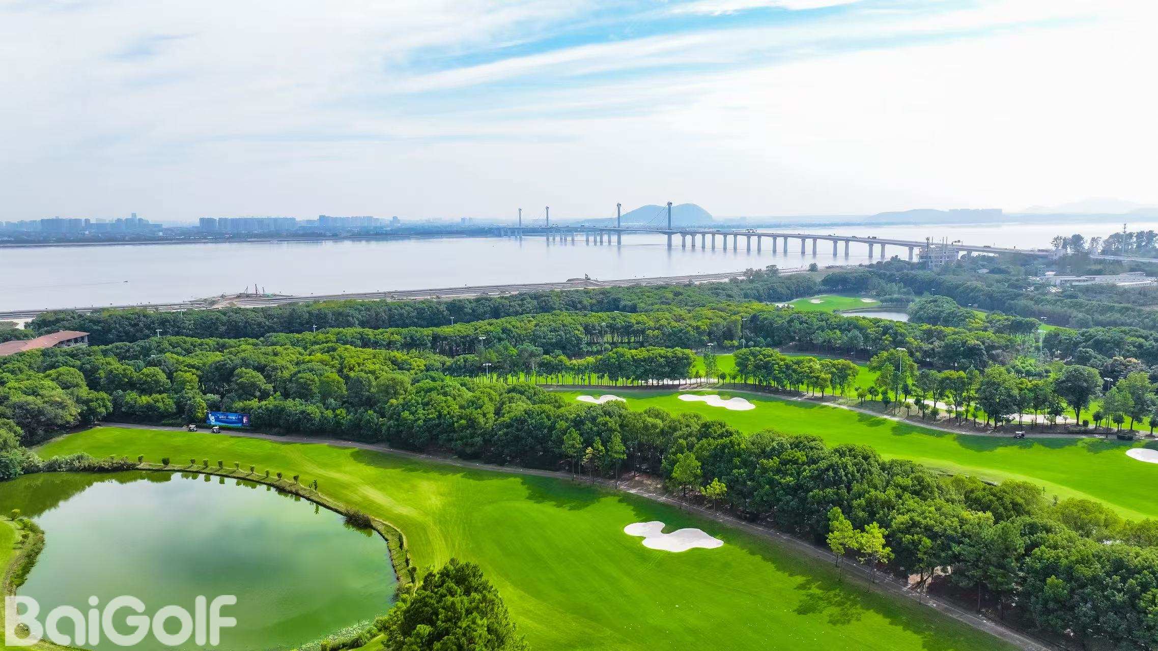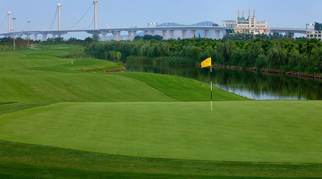 杭州九桥高尔夫俱乐部临江而建闹中取静,都市繁华与自然美景近在咫尺。非常具乡村特色的球场,江南乡村美景尽融其中,真可谓是“城市中的森林,杭城中的氧吧”。球场占地1100多亩,18洞标准72杆球场,每条球道都可以让球手根据自身的水平采取不同的击球策略,以遍布的湖泊、奇异岩石、强烈的线条对比为造型特色,兼具挑战性和趣味性。拥有夜间球场照明系统,9洞灯光球场。
