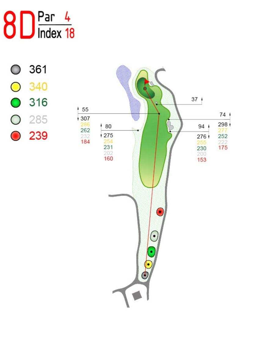 球道面积宽阔、通风,沙坑和湖泊系统巧妙布置,保证了球场的挑战性,同时也为球员和游客欣赏玉米山小镇——北克南的雄伟景象创造了条件。对于热爱挑战的球手来说,凭借得天独厚的地形优势,每个球洞都经过专门设计,带来不同的体验,蜿蜒的山顶和风,使挥杆更加有力,更以冒险的击球帮助球手征服令人印象深刻的高尔夫挑战。在球场设计之初,就对绿地种植的草进行了精心挑选和精确测量,球场的果岭区有一个陡峭的坡度,以达到最佳的干燥度。