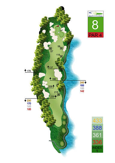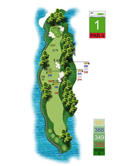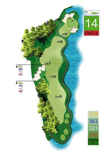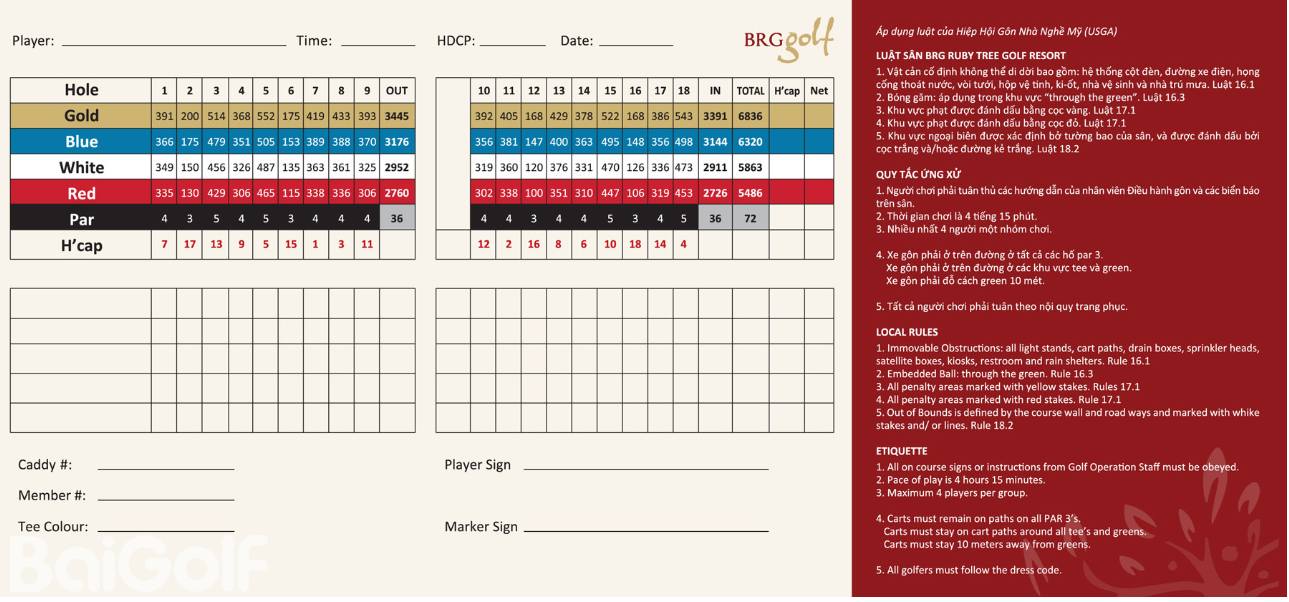 涂山高尔夫球场的特色之一是每个洞都有四个发球台的发球系统,其中包括对职业高尔夫球手极具挑战性的发球台,但也适合业余球手的发球台。果岭的大小从中号到大号不等,具有巧妙的曲线,让球手可以通过多种方式选择击球的放置方向。艺术造型的沙坑以及沿着度假村曲线的天然水流带来和平、安静、友好和高水平的体验。这创造了一种与越南其他高尔夫球场不同的高尔夫新感觉。