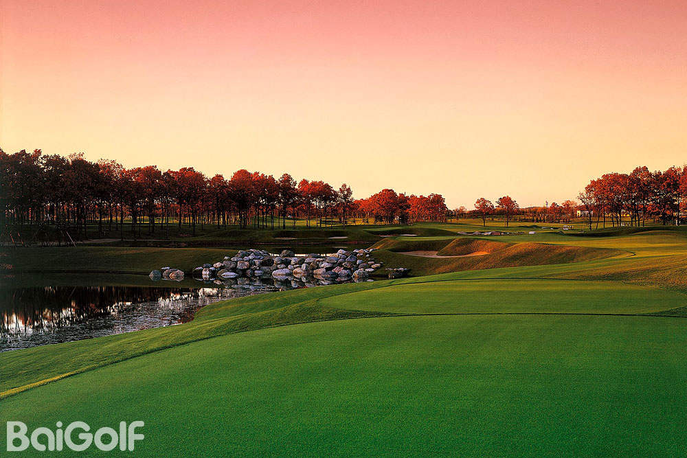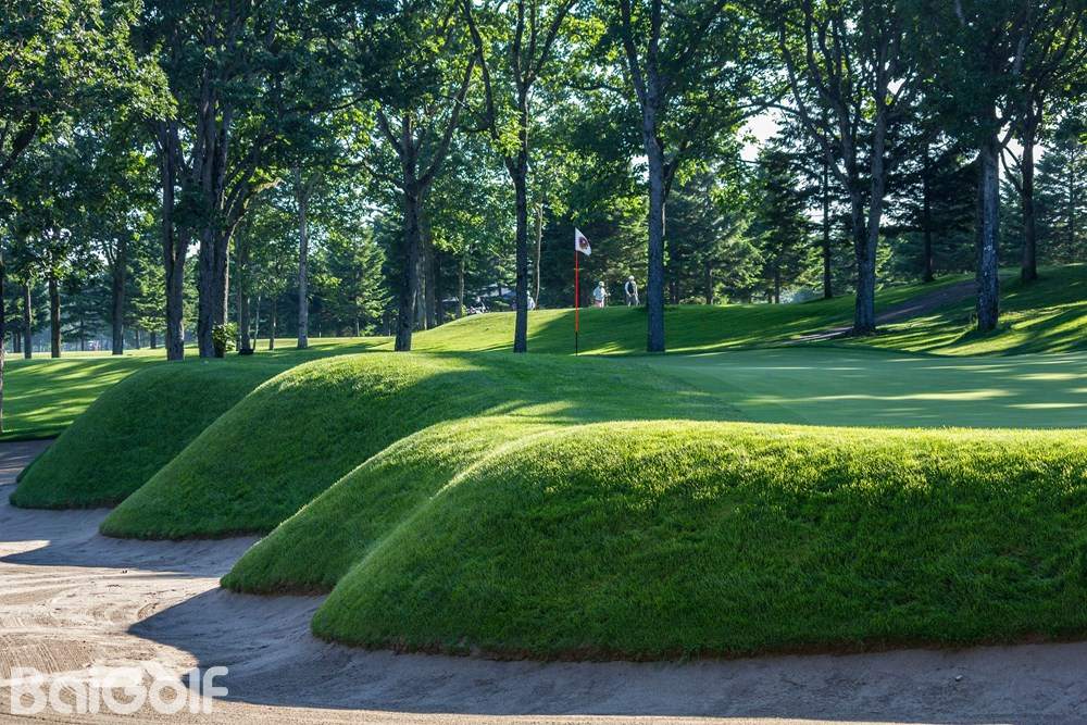 球道蜿蜒于原始森林之间,起伏的林木、闪耀的湖泊与潺潺溪流相互映衬,宛如一幅流动的风景画。果岭周围布置精巧,既考验球手的精准度,也激发他们的勇气与智慧。这里的草坪由日本匠人每日精心养护,四季皆呈现出近乎完美的状态:春日新绿,夏季清凉,秋有红叶,冬覆白雪,仿佛大自然的四重奏。