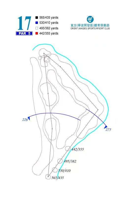 东方宁波球场占地1500亩,规划18洞国际竞赛级球场,地处通途路16公里处,宁波市中心於北仑港之间。球场设计极为精细,球道的坡度大多在15 度左右,最大的坡度可达25度-30度,沙坑错落有至分布於球场之中人工河流穿梭於球道之间,使球场另有一种大自然的情趣东方宁波属山坡球场,但具有海滨球场的风格,大部分球道都可远观北仑港与宁波市城市景观,使您在东方充分享受大自然及挥杆的乐趣。